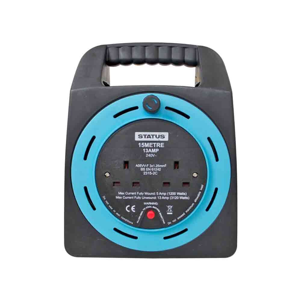 15 Meter Reel, 13 amp, 2 Socket Outlet, Thermal Cut Out