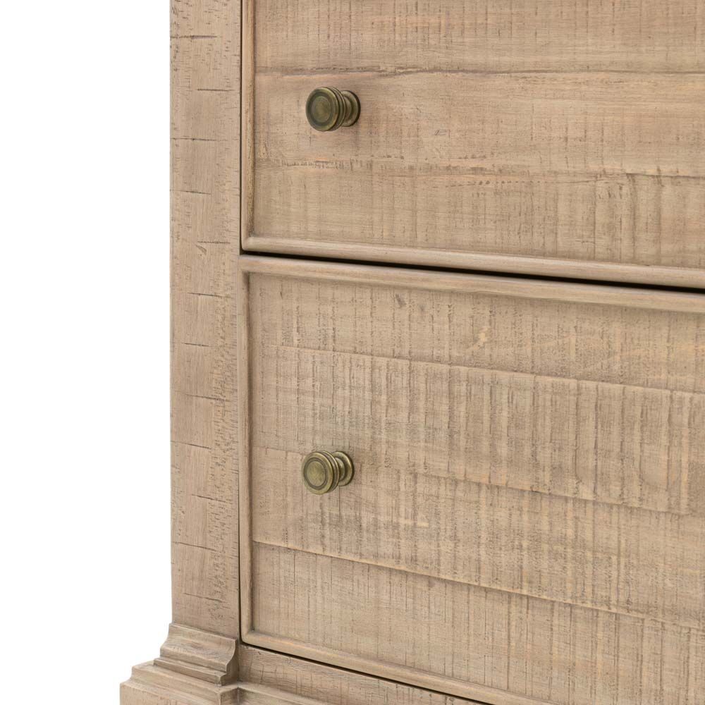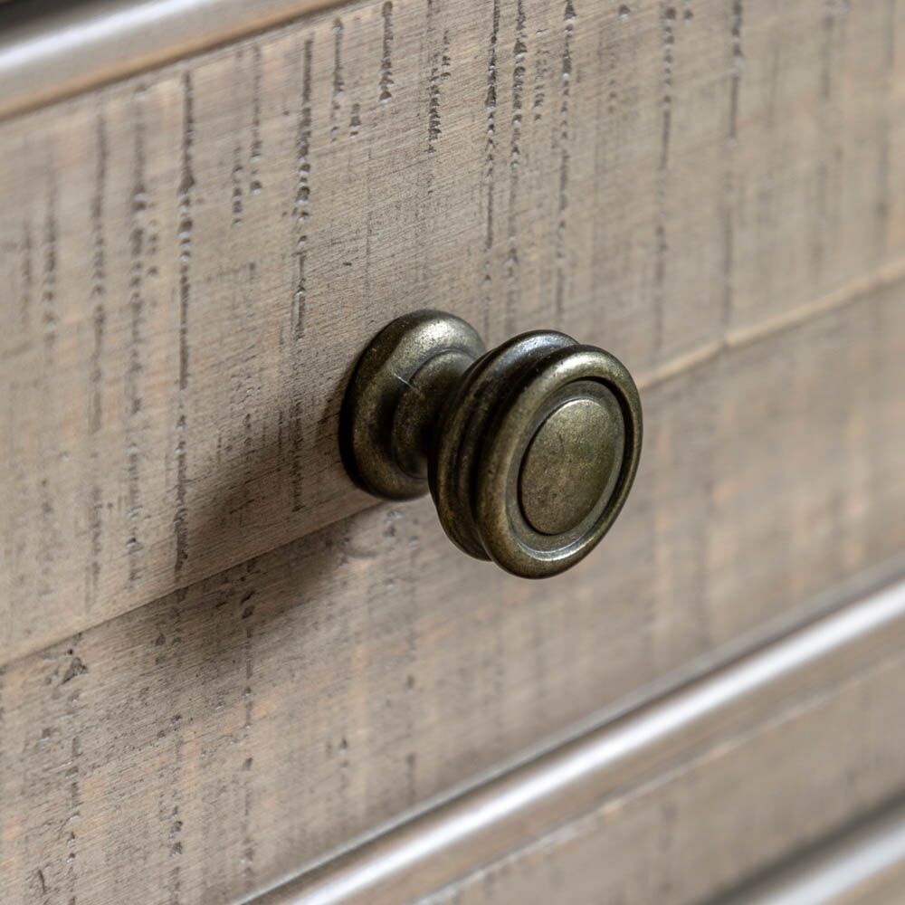 This 5 drawer chest is a charming and practical addition to any bedroom. Its weathered wood finish and simple design create a warm and inviting atmosphere. The five drawers provide ample storage space for clothing, linens, and other essentials. Perfect for adding a touch of rustic charm to your space.