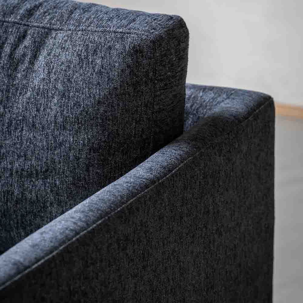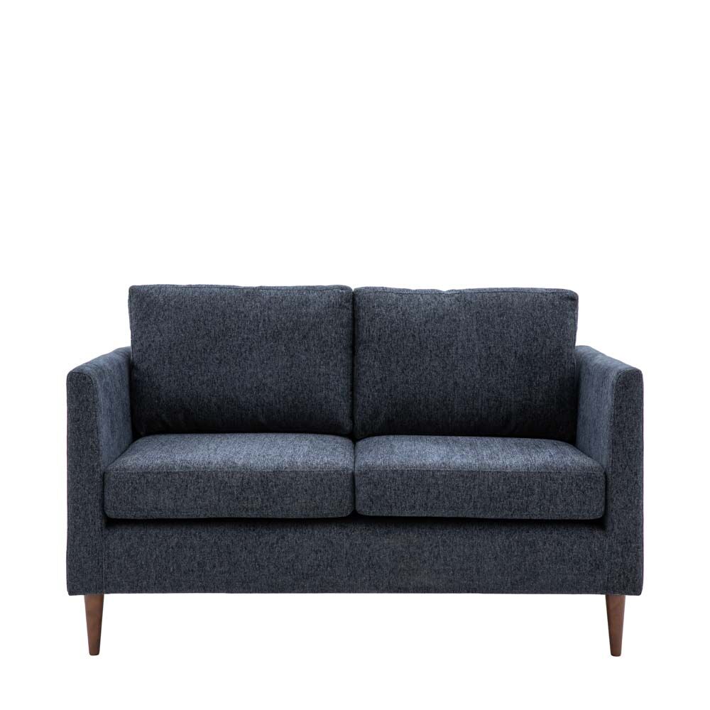 This contemporary 2-seater sofa offers a simple stylish design which would suit a wide range of interiors. Upholstered in a beautiful charcoal grey fabric with deep seat and back cushions for comfort, the turned wooden legs echo the shape of the gently tapered arms in a lovely design detail. Matching armchair and 3-seater sofa are available to give a coordinated look to a room.