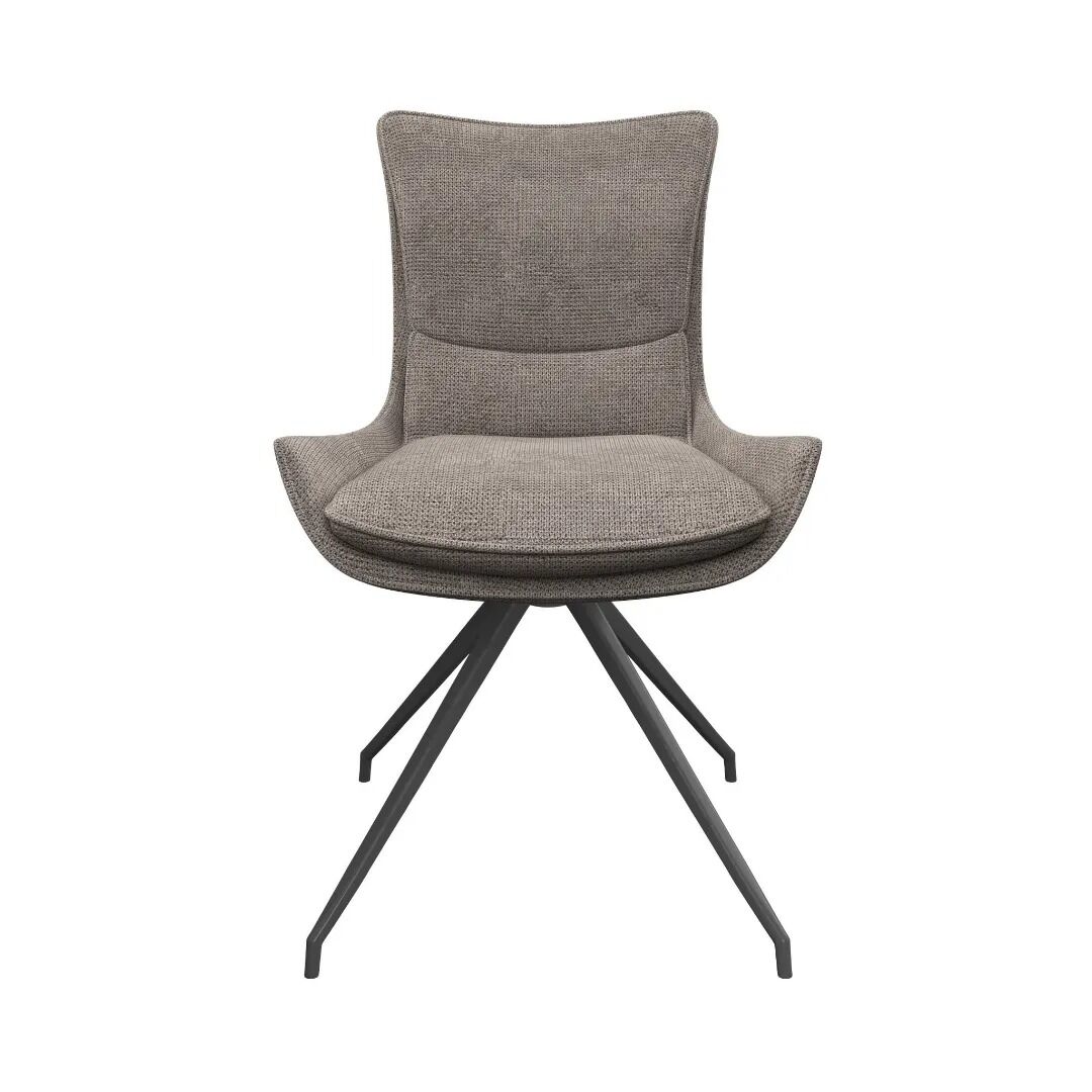 The Amber Swivel Dining Chair offers a unique 360-degree rebound swivel mechanism, allowing for a dynamic and flexible seating experience. The sumptuous fabric enhances both the look and feel of the chair, while the contoured padded backrest and cushioned seat pad ensure optimal comfort. The sleek design is complemented by grey powder-coated spider legs, adding a touch of modern elegance.