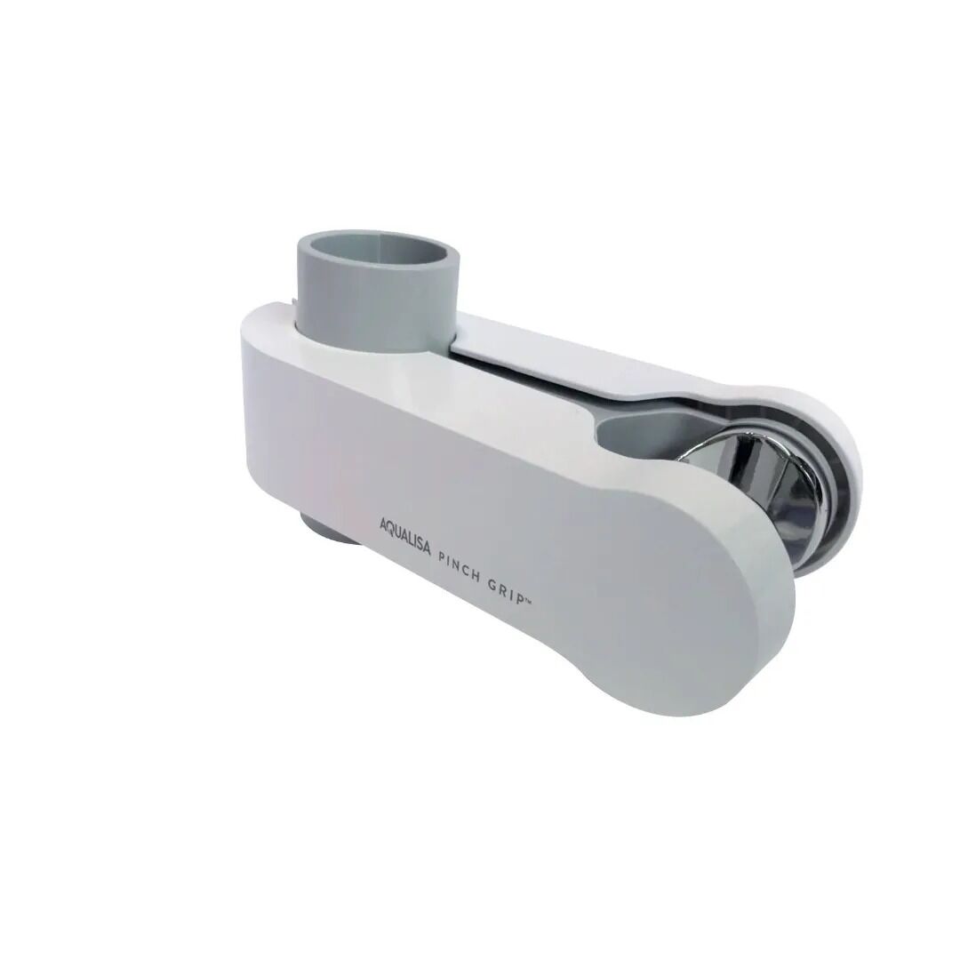 This sleek adjustable Shower Head Holder is designed to fit on 25mm shower rails, and acts as the perfect accompaniment when looking to refresh your bathroom. Available in a White finish and featuring our signature Pinch Grip? technology, this shower head holder is designed to offer complete ease in adjusting the height of an adjustable shower head on a rail. The integrated ratchet mechanism allows you to adjust the handle of the shower head with ease, creating a customisable set-up for the whole family.