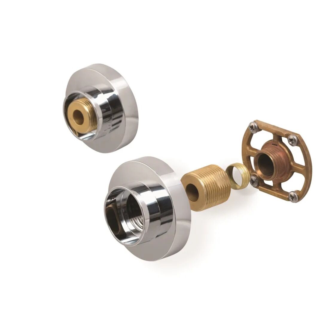 The Midas bar valve fixing kit simplifies installation. With diagonal fixing points, damage to hidden pipework can be avoided and spanner flats increase grip while tightening, reducing the risk of damage to tiling. Slotted fixing points allow fine adjustment for trouble-free fixing. And for a perfect finish, the fixing kit comes with cover plates that hide unsightly valve threads.