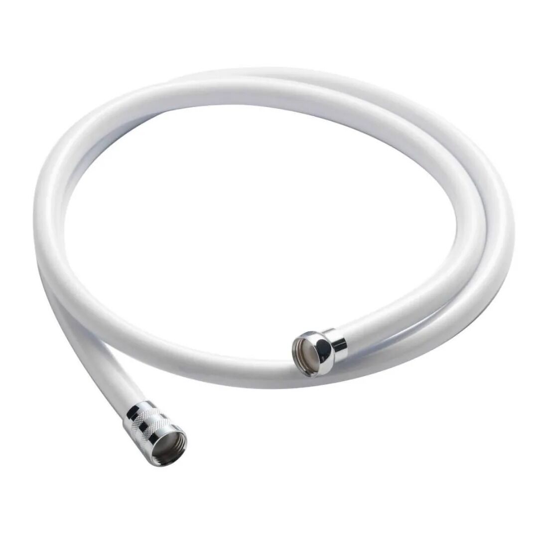 A plastic shower hose with a length of 1.5m and a standard connection thread size of 1/2″ BSP. Available in a Smooth White finish, this hose features a screw twist end that is easy to fit. Supplied with x2 Hose Washers.