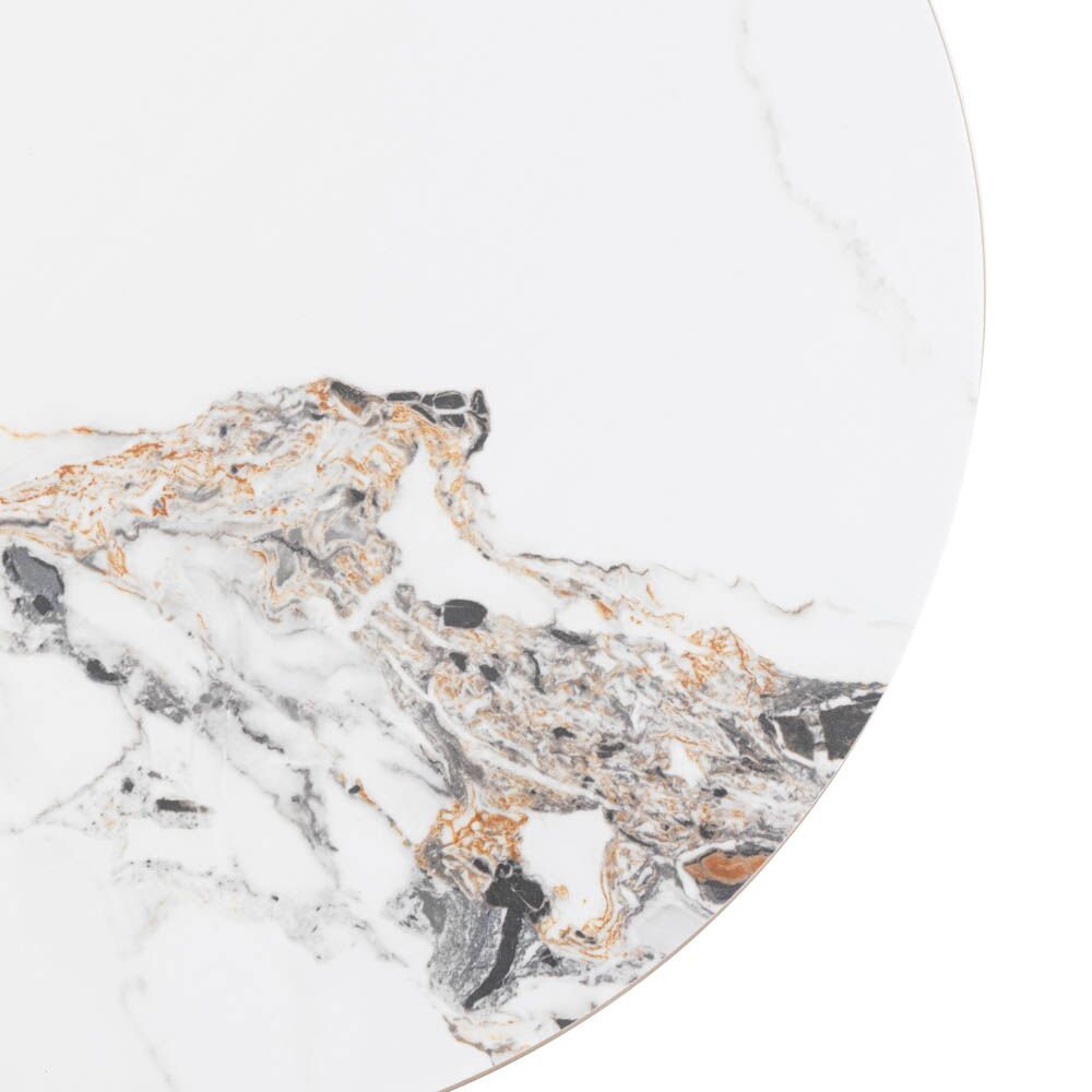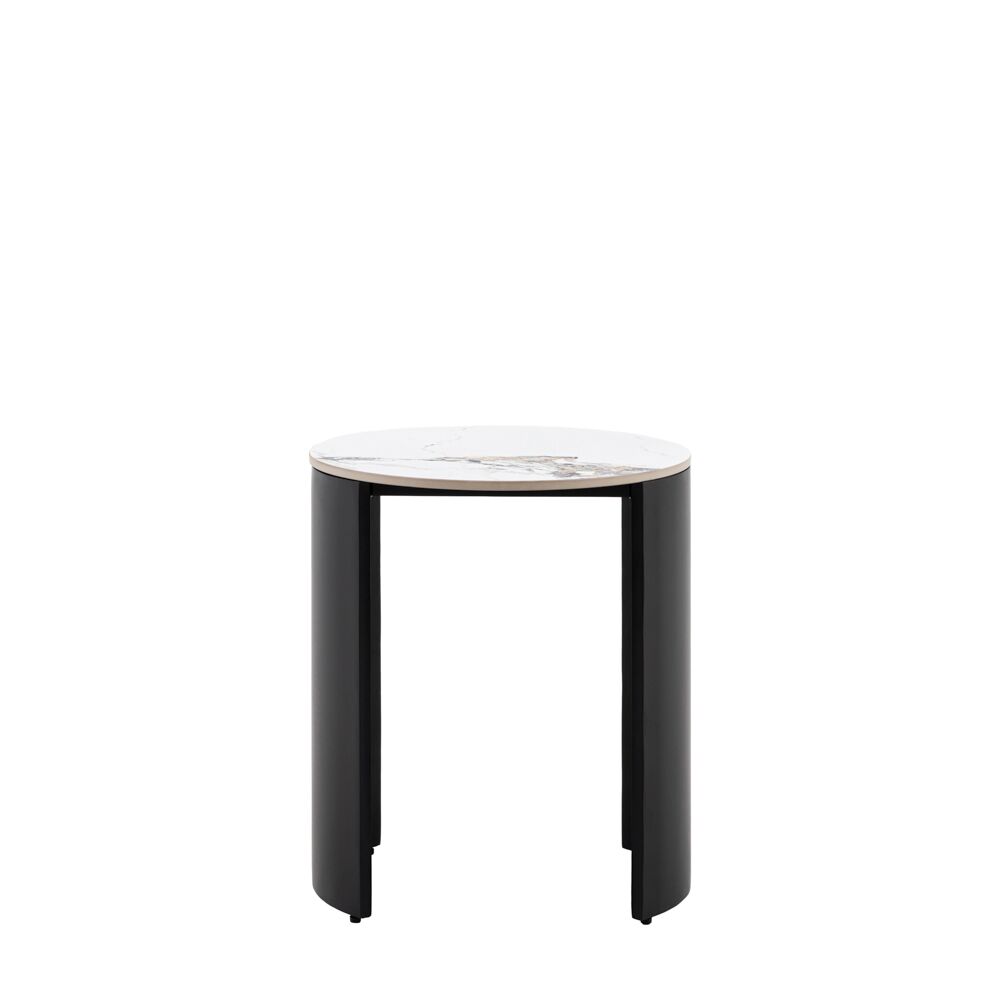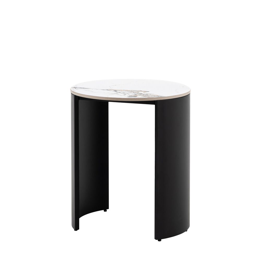 Elegant and modern, this side table brings high end style to any space. The smooth curves and sleek matt black metal legs are designed to show off the Carrara marble stone top, completing the luxury feel while maintaining an elegant, modern style.