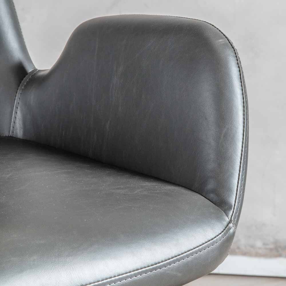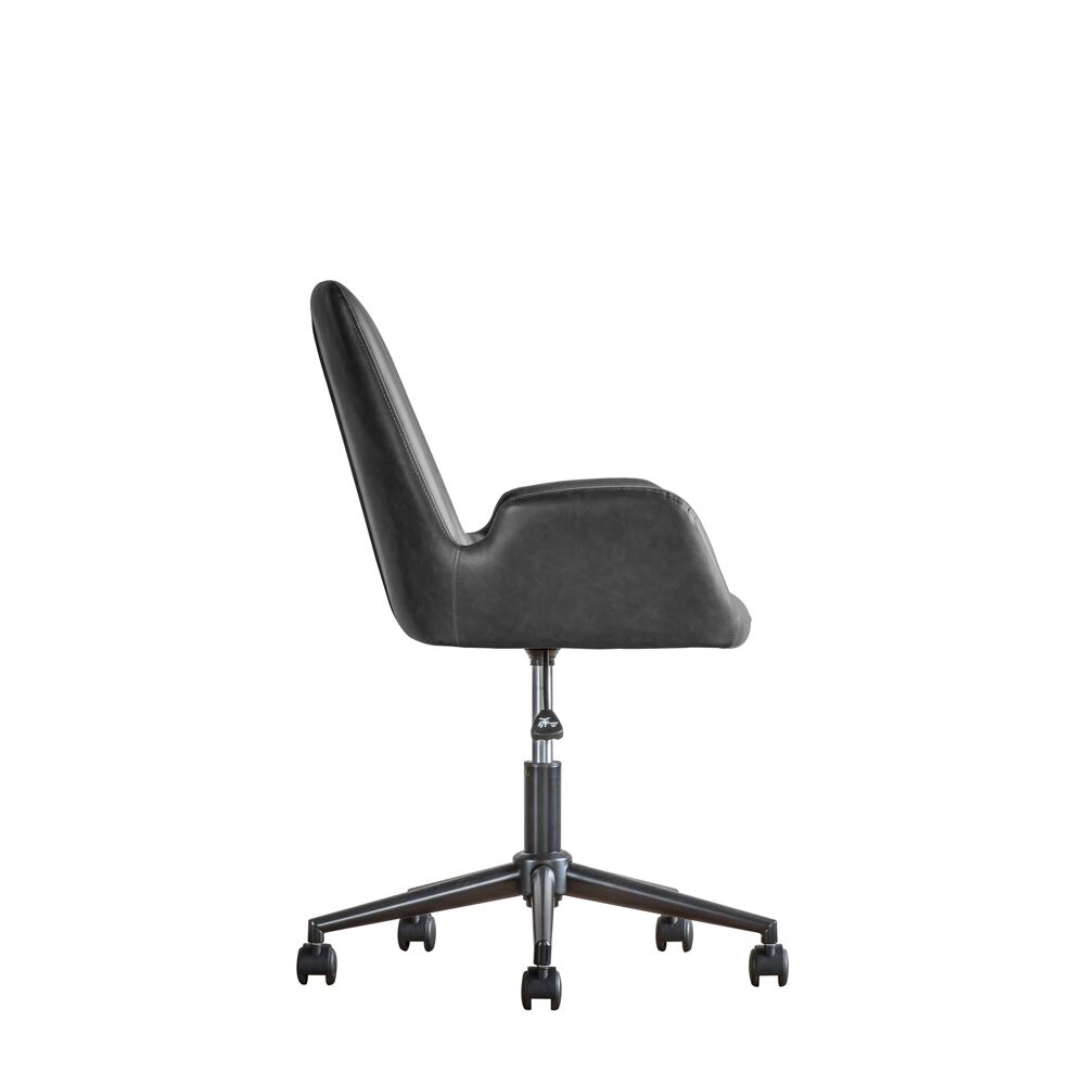 Combining stylish design, comfort and practicality, this swivel Chair is perfect for the home office. Upholstered in charcoal faux leather, the chair features castors for easy manoeuvrability and gas height adjustment of the seat. The Faraday is also available in brown.
