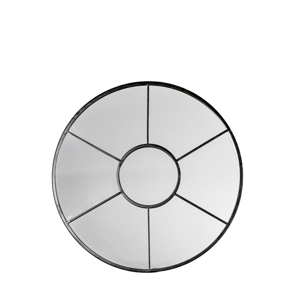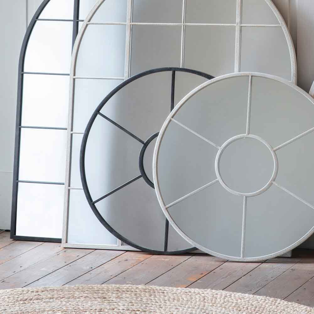 A lovely round window-style mirror in a black finish. Also available in a soft white finish.