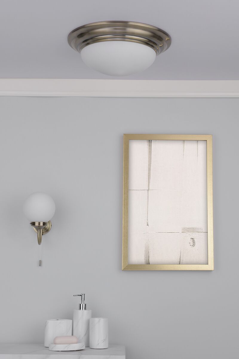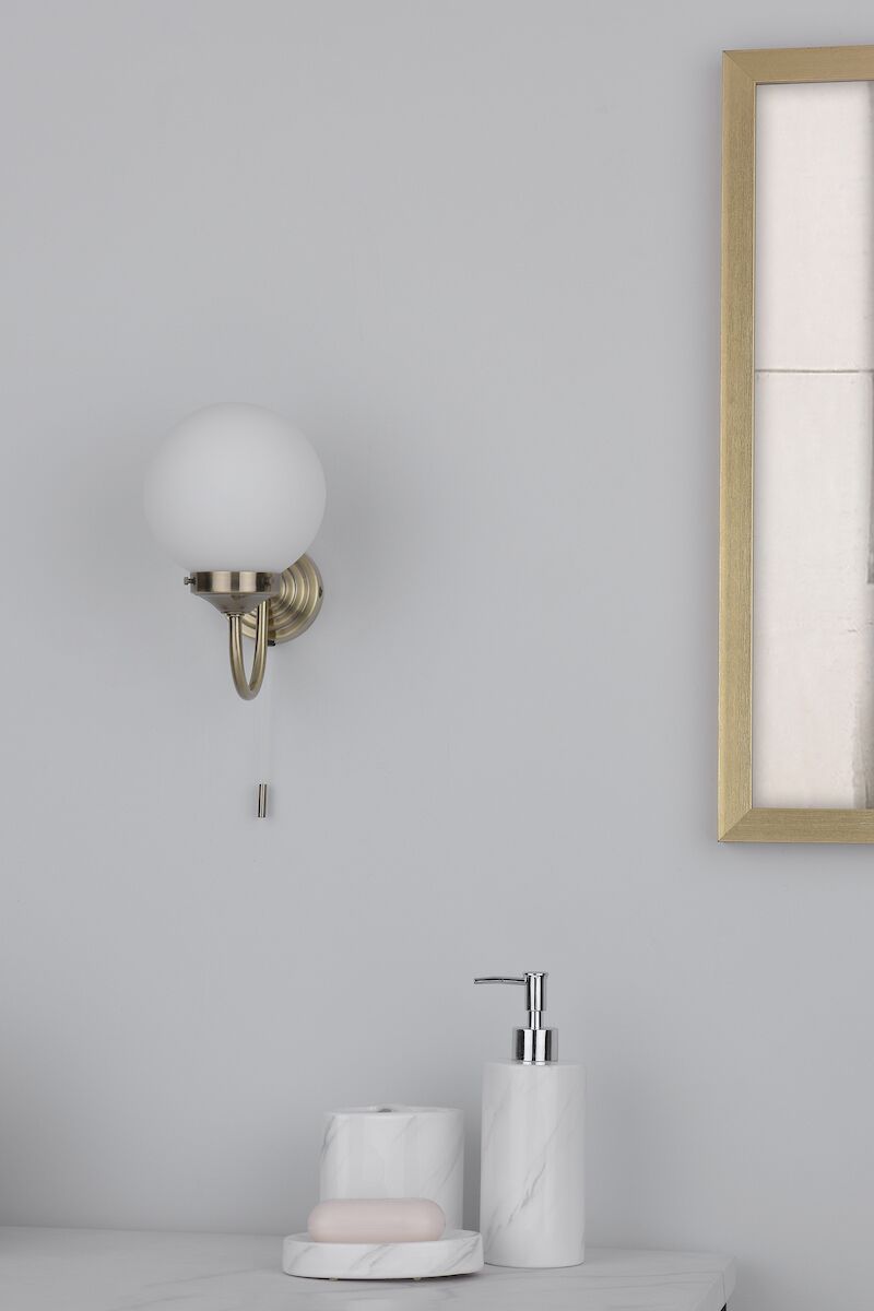 Barclay Bathroom Wall Light Antique Brass Opal Glass IP44