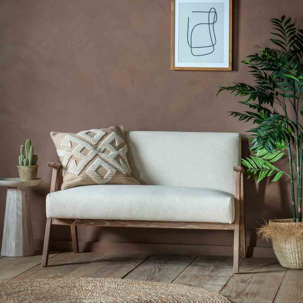 Our popular armchair has been extended to create this matching 2 seater sofa. It is upholstered in a subtle natural colour linen paired with an ash wood frame with a light wash. This 2 seater sofa is also available in Pebble linen and Heritage Green and Vintage Brown leather.
