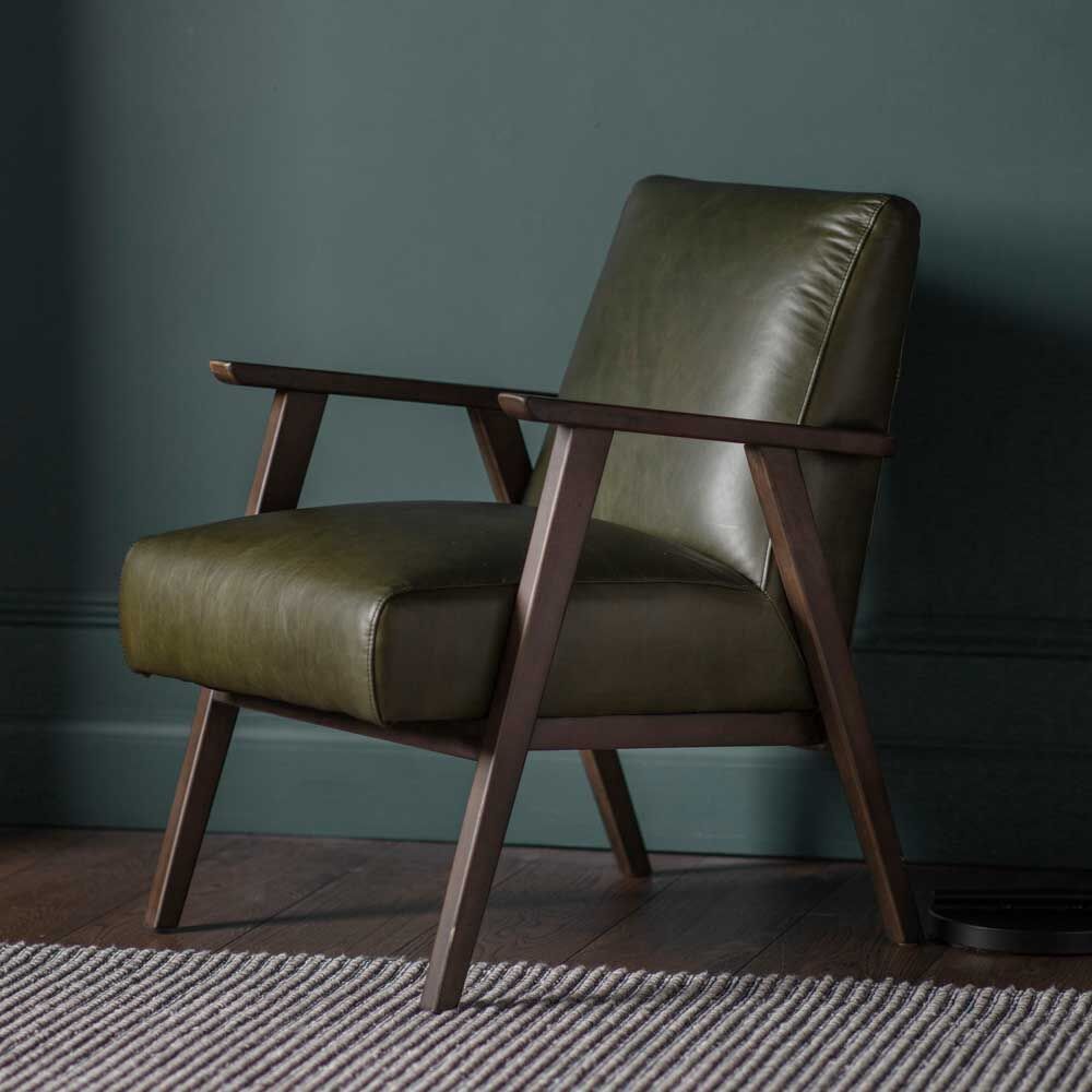 Classic Mid-Century inspired arm chair finished in a beautiful heritage green leather. Available in four colours, there is a chair to suit any interior d?cor.