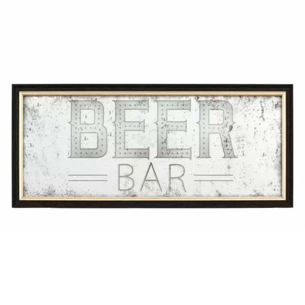 This vintage inspired mirror exudes nostalgic charm featuring a distressed mirrored background with a retro style font and a black frame. Ideal for enhancing the ambiance of a bar or kitchen area.