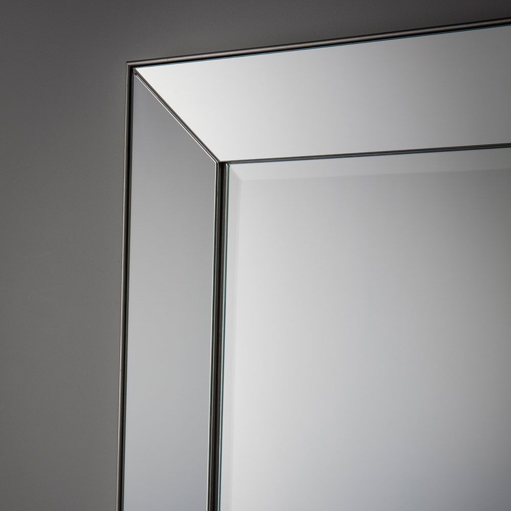 Sleek, stylish mirror with a shallow angled mirror frame and an elegant silver surround.