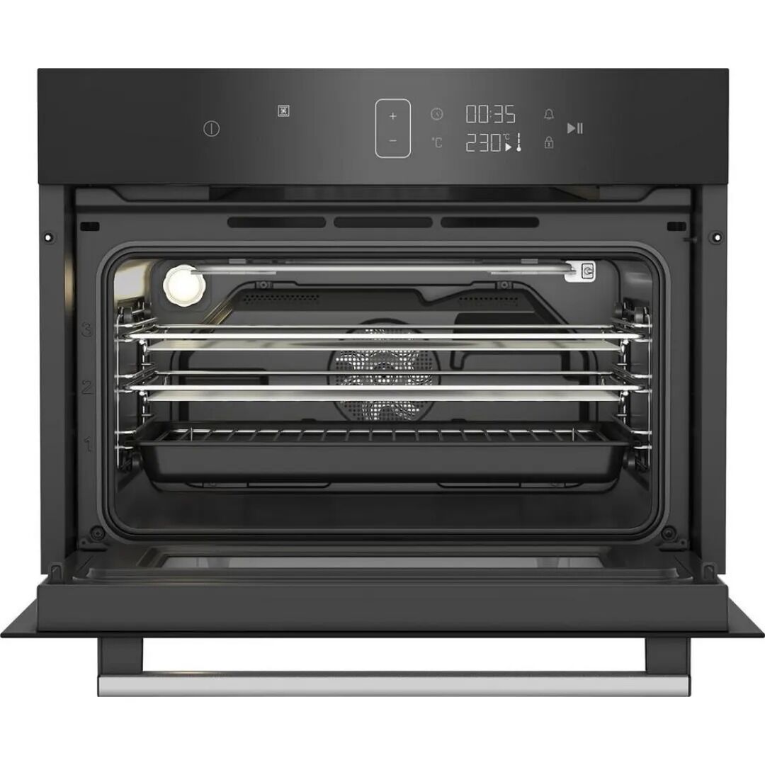 Rustle up something tasty with this combination microwave oven from Blomberg. Use the 16 powerful cooking programs on this model to create all your favourite dishes with ease. You can use the ROKW8370B as a conventional oven, microwave, or a clever combination of the two for complete flexibility. Functions include Keep Warm, 3D Cooking, Pizza, Grill, Fan, and Defrost. The 48L capacity and compact, built-in size means it’s the perfect space saver for smaller kitchens. What’s more, thanks to the touch control animated LED display, controlling your oven is a breeze.