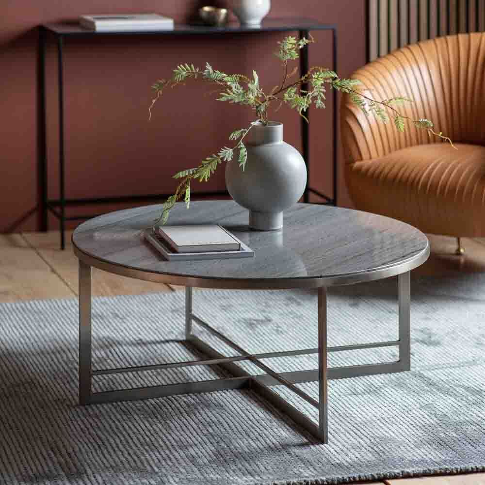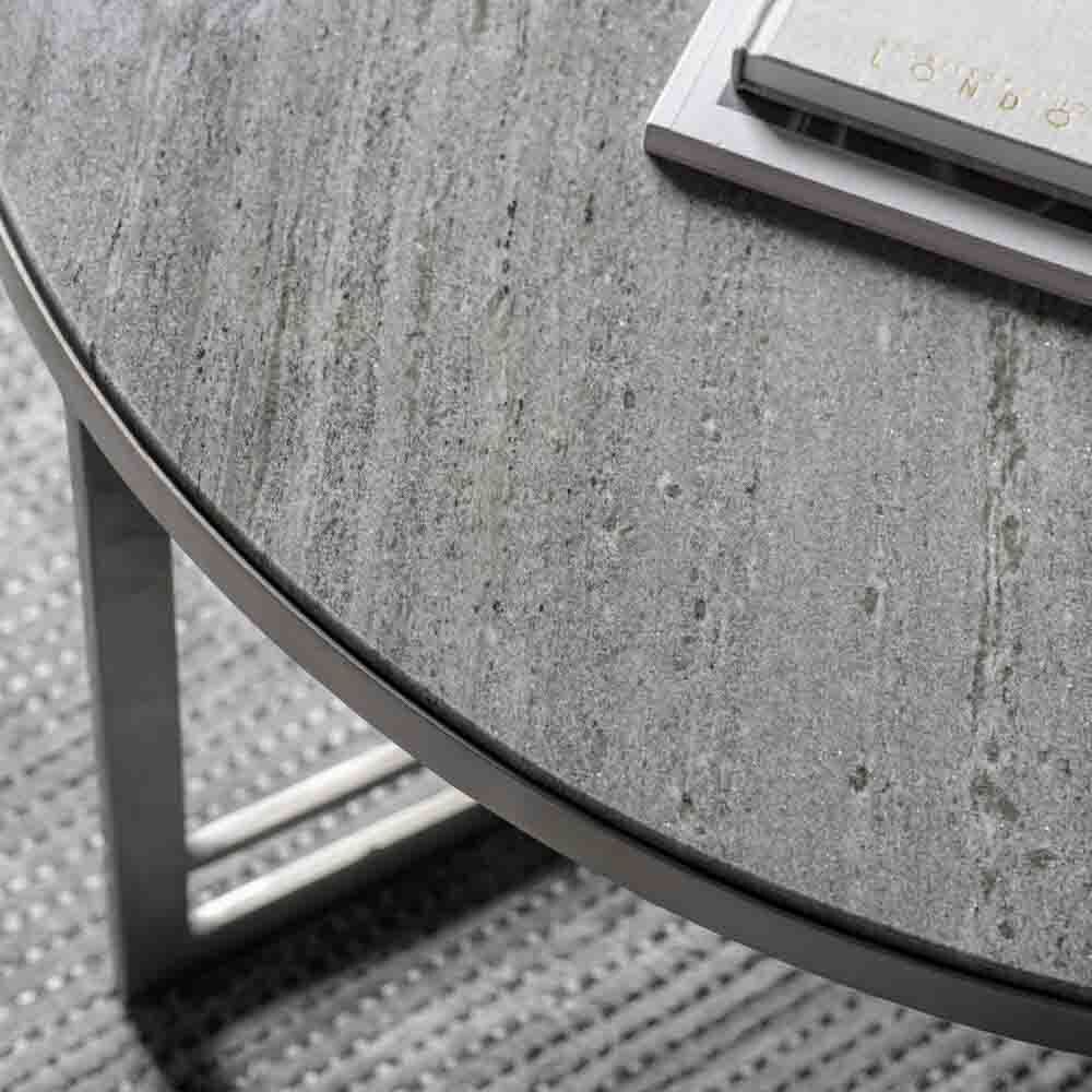 With its grey marble top which sits beautifully on the ?brushed steel? base, this coffee table makes a stunning addition to a room offering a sophisticated apartment living look. A matching side table is available, and both tables are also offered in black which feature black marble and a matt black metal base. Thanks to the marble being a natural material, each table is unique.