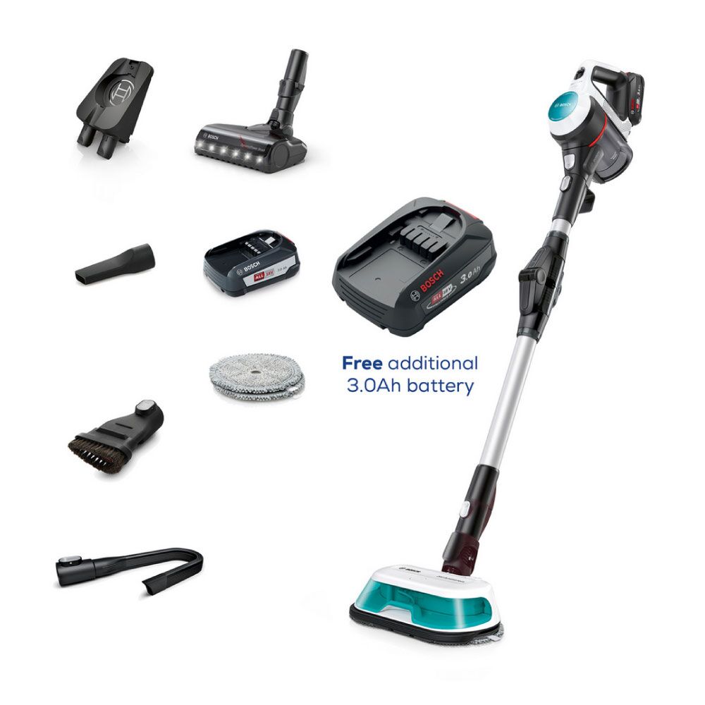 Bosch Unlimited 7 BCS71HYGGBKIT Aqua Vacuum & Mop PLUS Battery – 40 Minutes Run Time – White