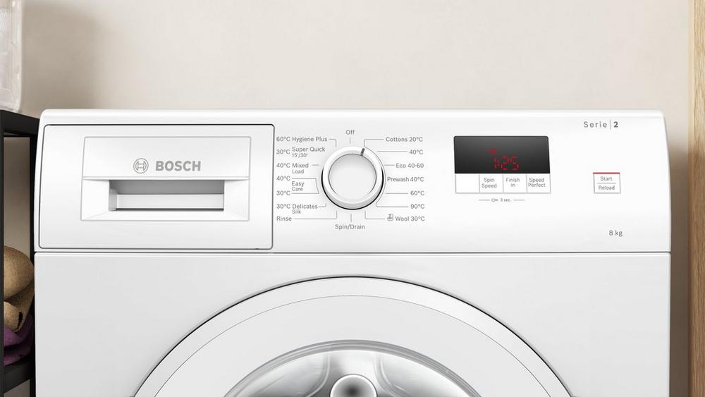 Make laundry day easy with this 8kg washing machine from Bosch.