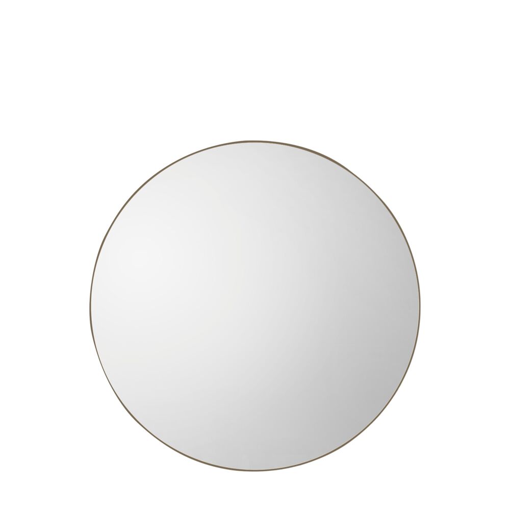 Featuring a slim elegant champagne metal frame, this round mirror is the perfect way to update your home. The contemporary shape and industrial inspired frame create a stunning statement piece.