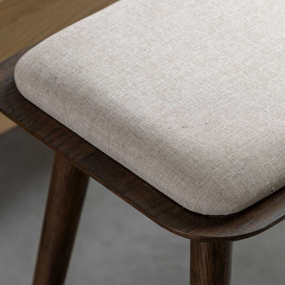 This versatile bench can be used in a variety of settings, from the foot of a bed to the hallway. Its oak frame is both durable and aesthetically pleasing, with a neutral fabric to accompany its contemporary design and enhance comfort. The smoked finish creates a warm and inviting look.
