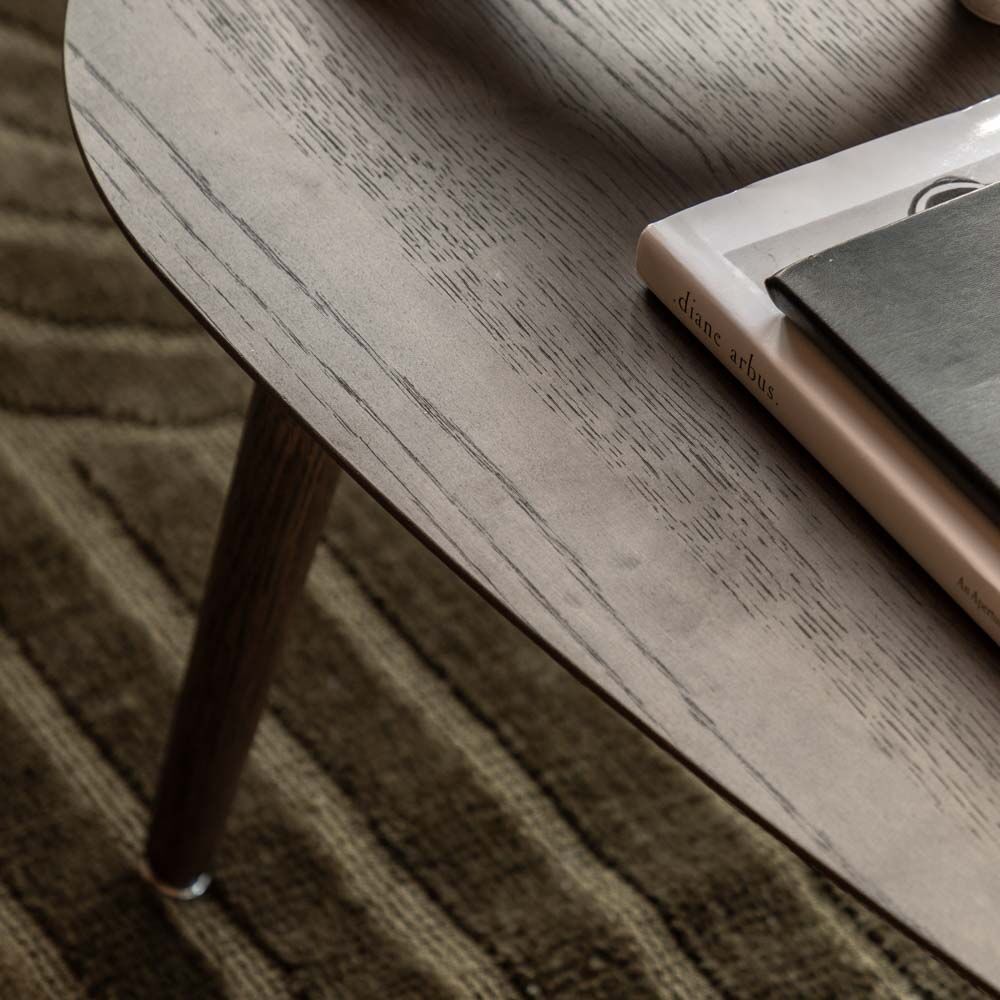The Hatfield CoffeeTable is a unique and stylish addition to any living space. Its organic, oval shape and solid oak construction create a warm and inviting atmosphere. The tapered legs add a touch of Scandinavian minimalism, smoked wood finish complements a variety of interior styles. Perfect for relaxing with a book or entertaining guests.