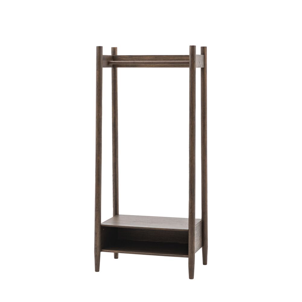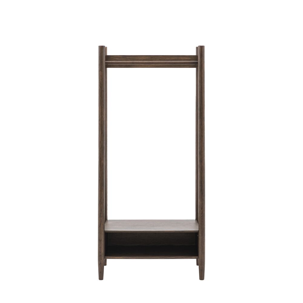 This open wardrobe is a stylish and functional addition to any bedroom. Its minimalist design and oak construction create a sleek and modern look and the smoked finish creates a warm and inviting feel. The sturdy frame and spacious shelf provide ample space for hanging coats, hats, and bags. Perfect for keeping any space tidy and organised.