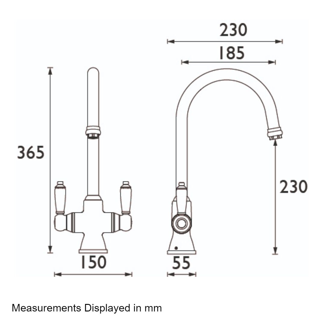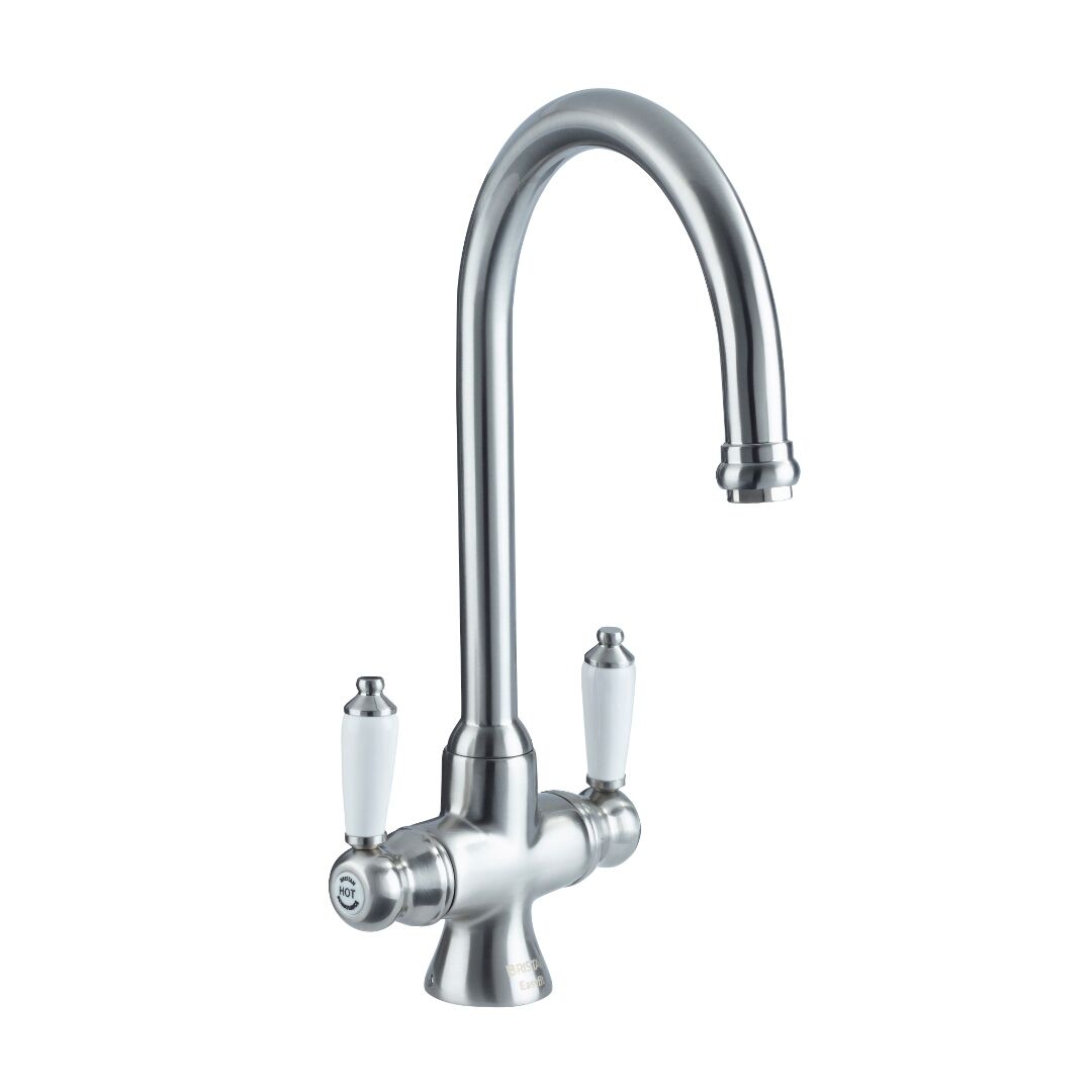 A traditional twin lever kitchen tap featuring Top Fix Easyfit technology. Simply drop and twist the top fix base into the tap hole from above, and lock into place with the Allen key provided. Two supplied isolation valves and flexi tails mean you can connect to the water supply at this point and isolate the base. Everything you need in the box including an Allen key, isolation valves, Top Fix Easyfit base, Easyfit tool and flexi tails. 10 year parts and 1 year labour guarantee for peace of mind.