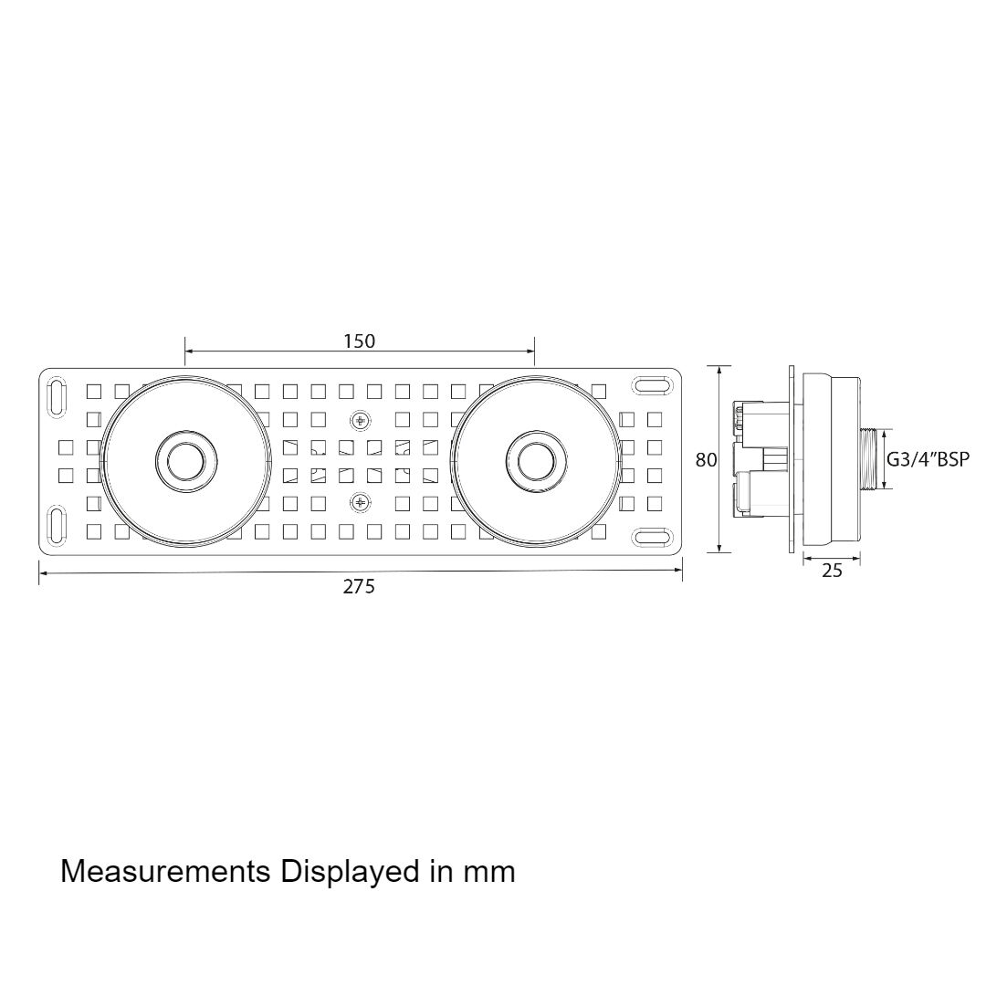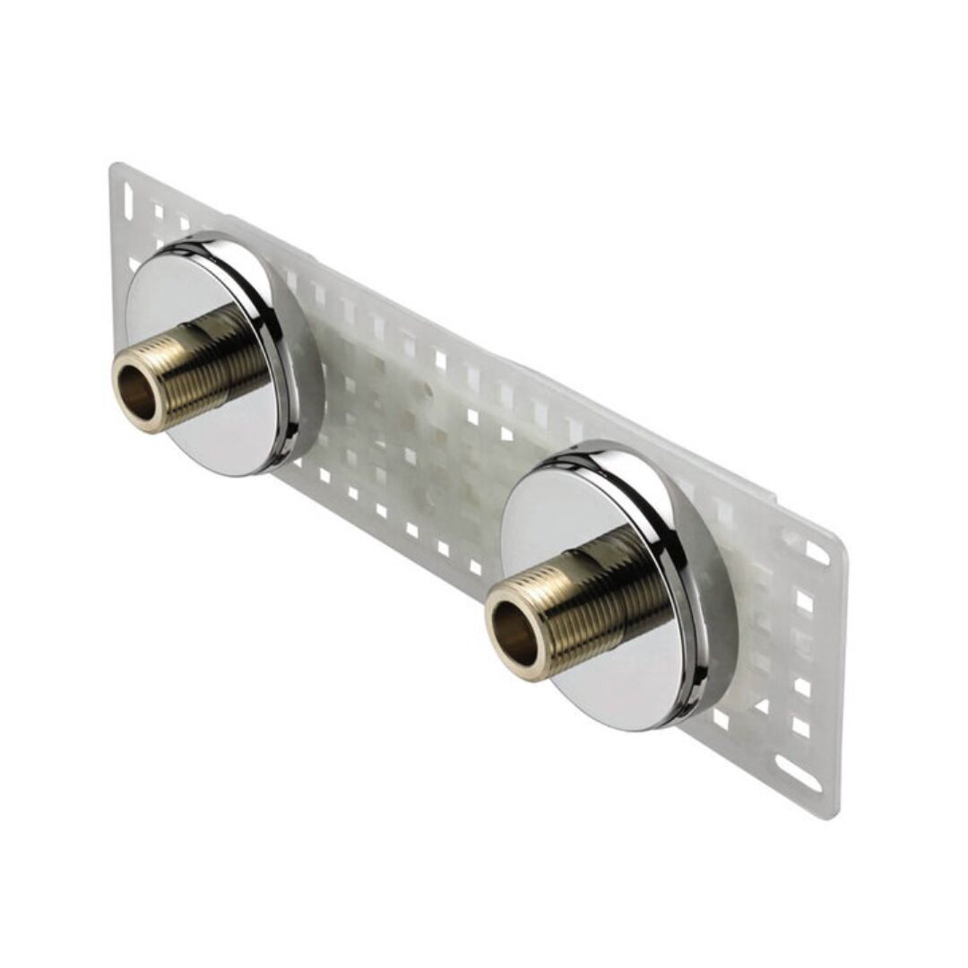 Enables first-fix rigid fixing of exposed bar shower valves to 15mm pipework guaranteeing 150mm centres during tiling/plastering.