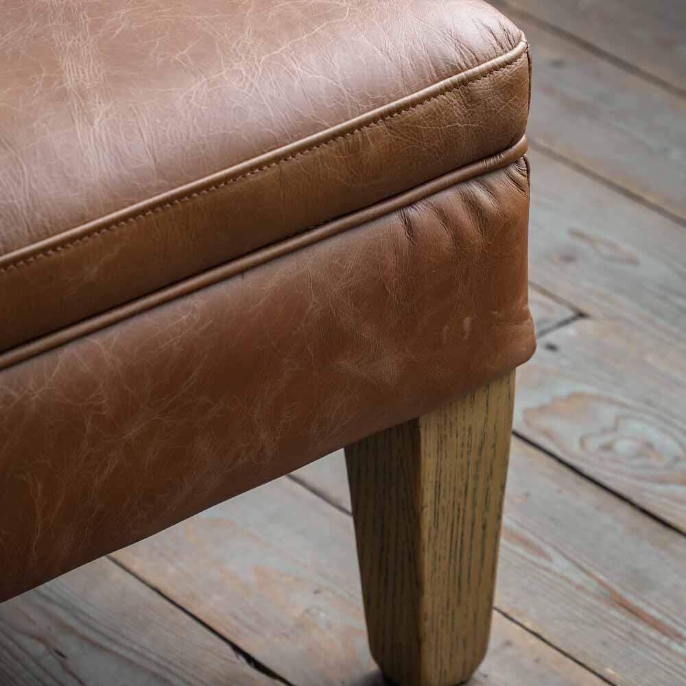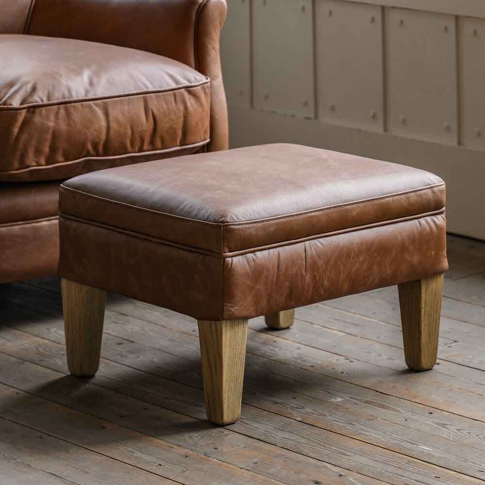This beautifully plump cushioned footstool is the perfect partner to our coordinating armchair and sofa, featuring top grain vintage brown leather and solid ash legs.