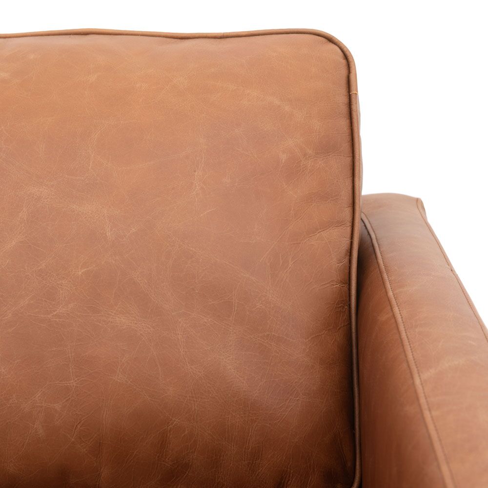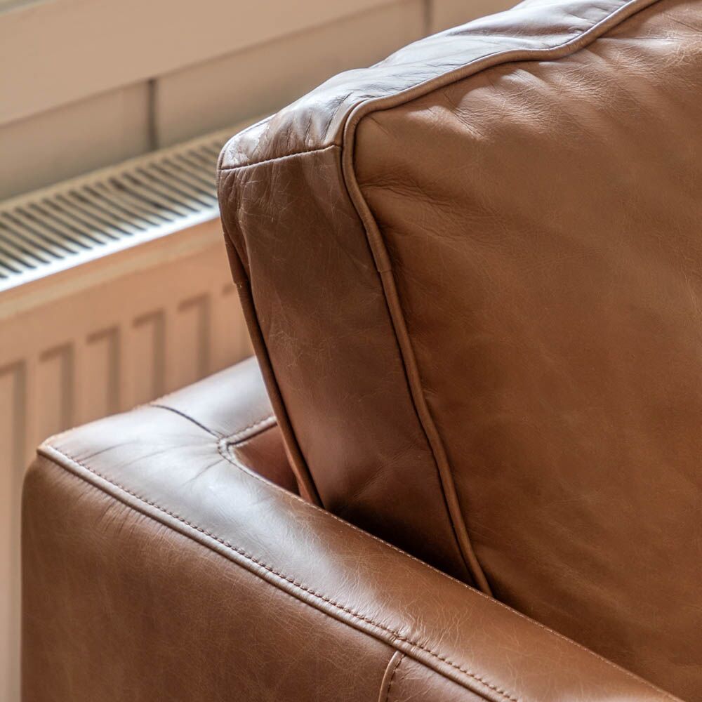This simply stylish sofa would suit a wide range of interiors with ease. It is upholstered in top grain full leather hide in a warm brown hue, which looks lovely with the ash legs.