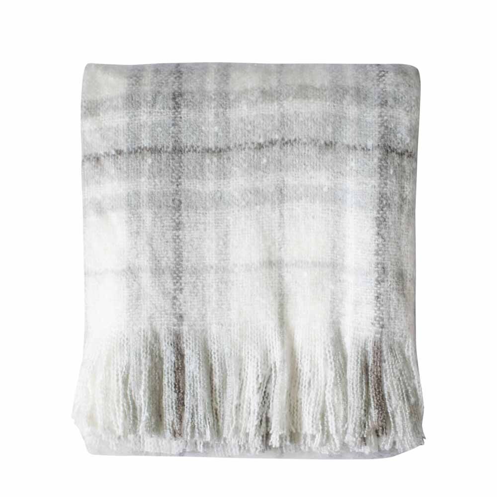 Soft and delicate mohair feel throw with country check and frayed fringing detail.