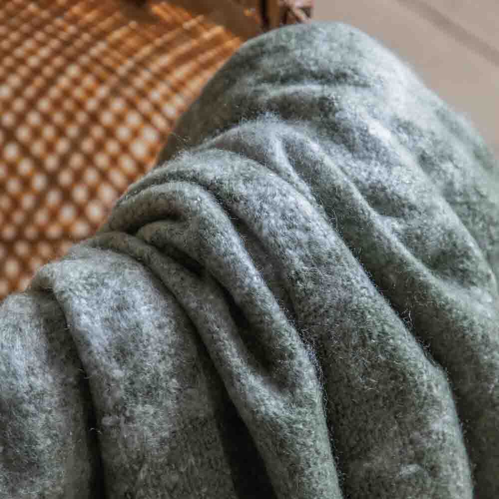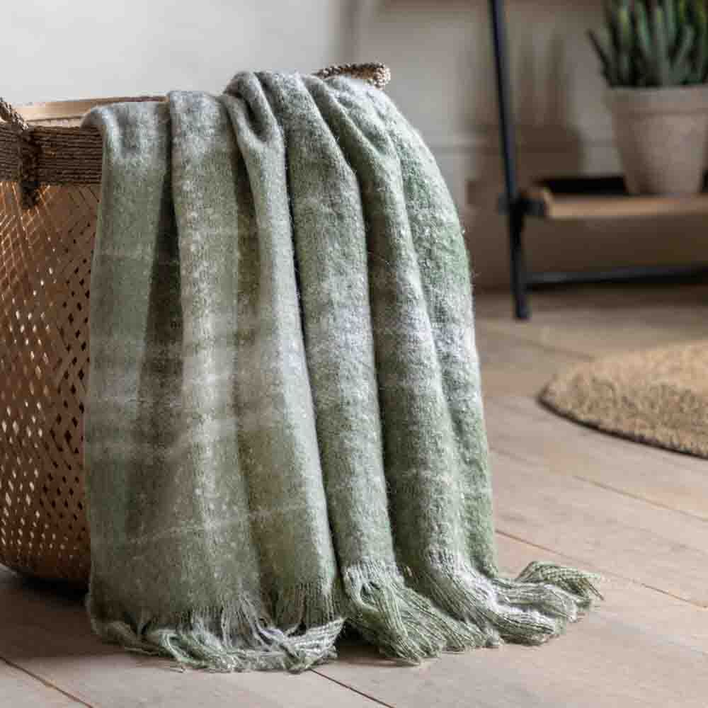 Soft and comfy this green check faux mohair throw with tactile fringing detail will bring a cosy charm to your space.