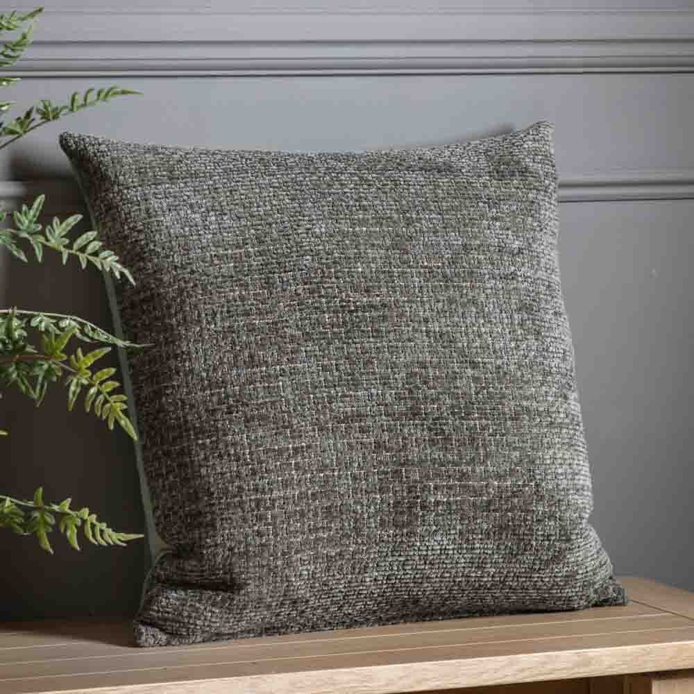 Add some sumptuous style to your room with this soft textured green toned chenille cushion.