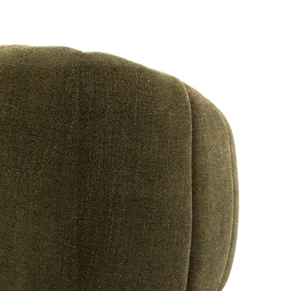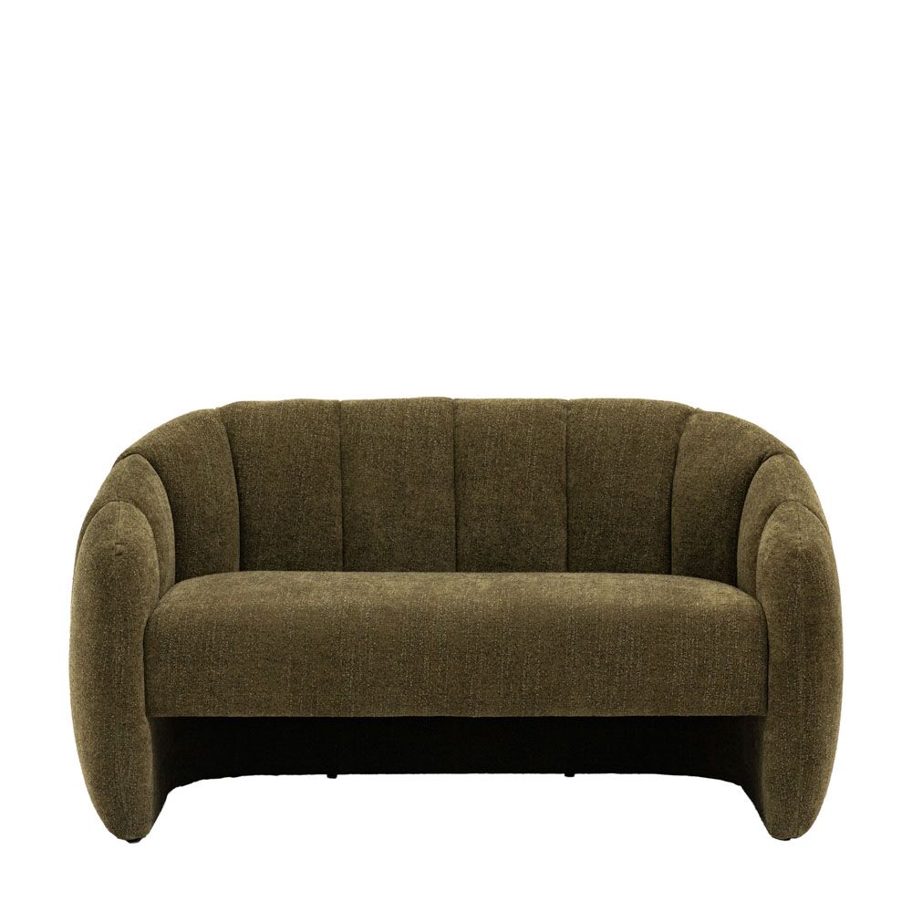This sofa combines contemporary design with exceptional comfort, featuring a curved silhouette, channel-tufted upholstery, and plush cushioning. Upholstered in a rich, earthy fabric, it brings a sophisticated yet inviting touch to any space.