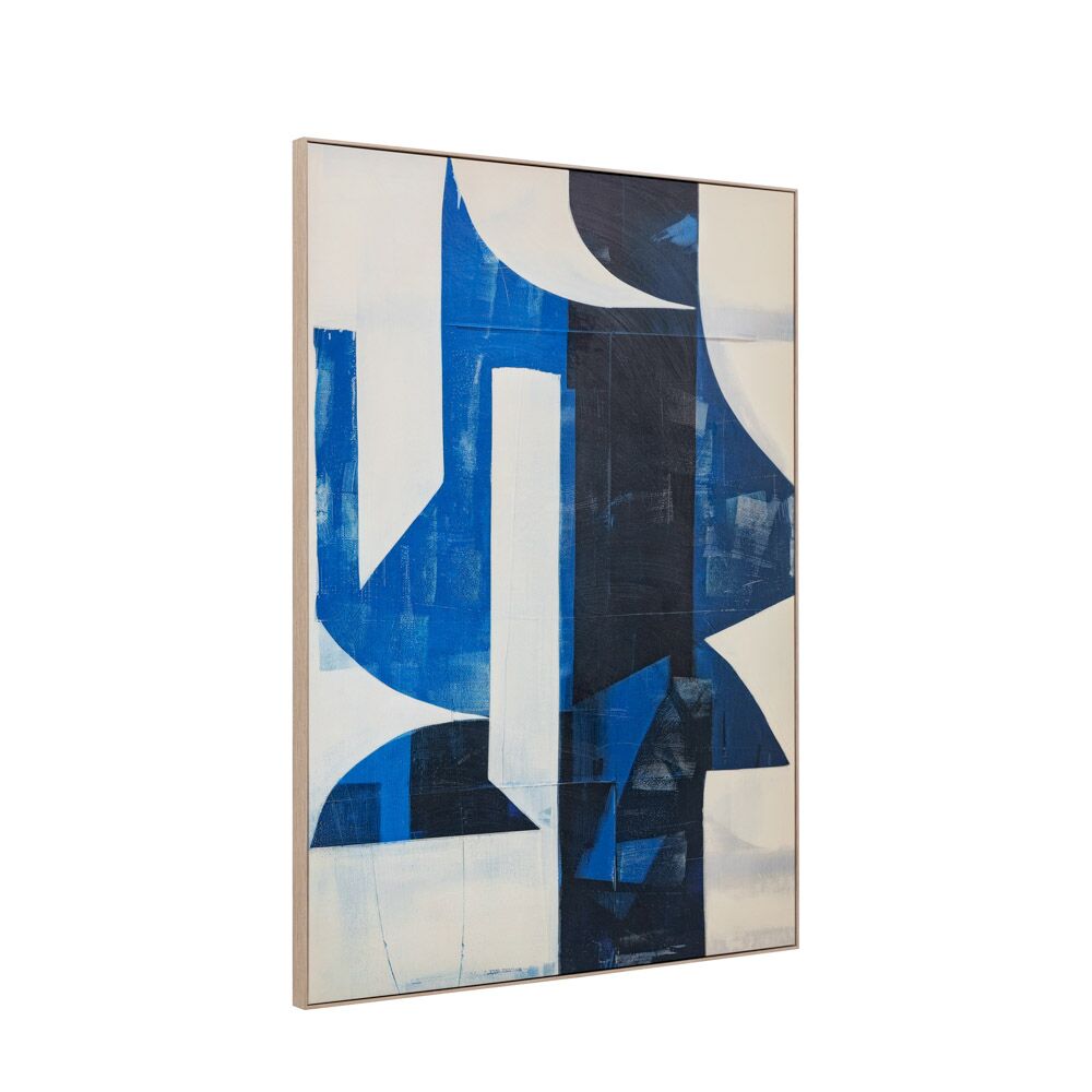 Make a bold statement with this striking piece, featuring a vibrant cobalt blue palette and dynamic abstract shapes, creating a captivating focal point for any room.