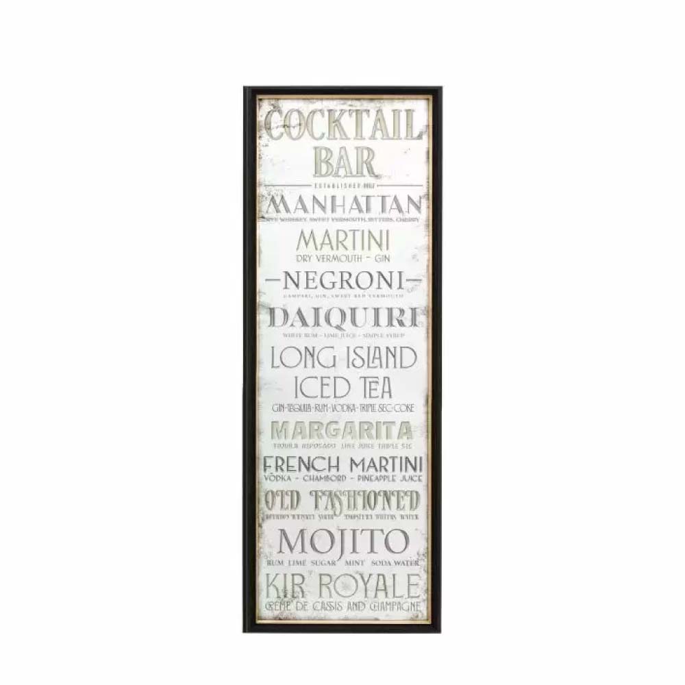 This vintage inspired mirror exudes nostalgic charm featuring a distressed mirrored background with a retro style font and a black frame. Ideal for enhancing the ambiance of a bar or kitchen area.