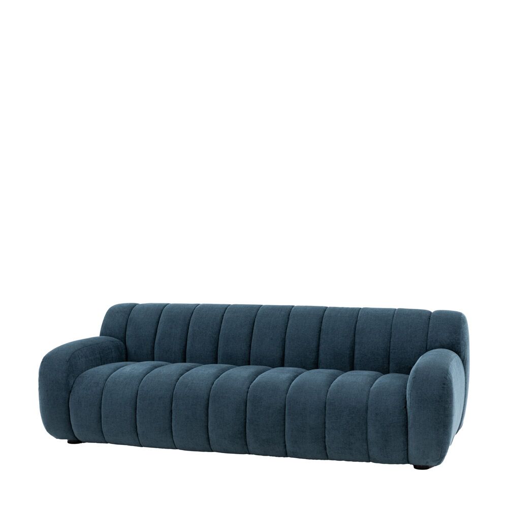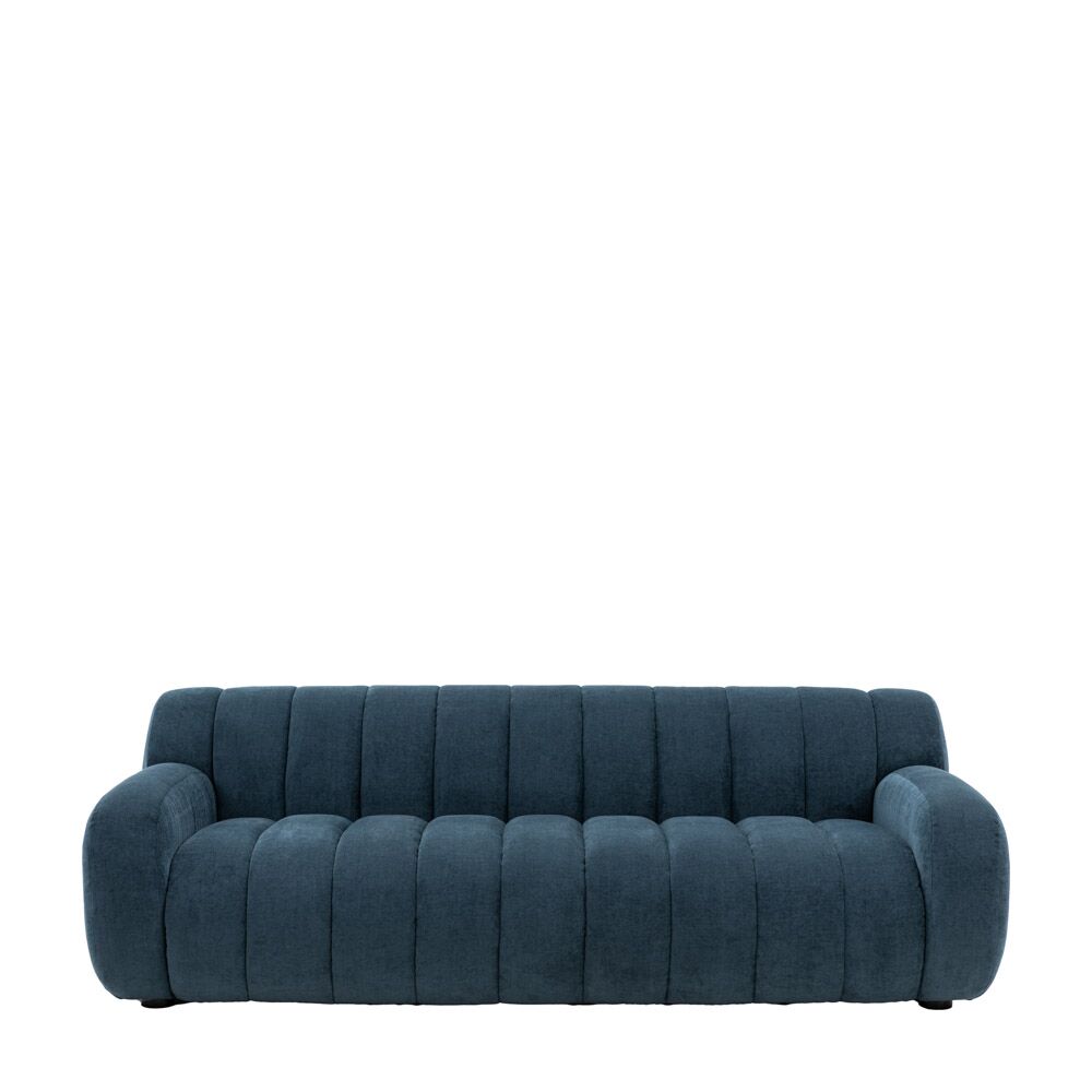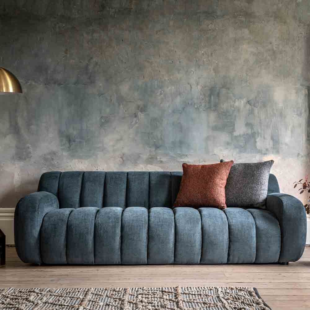 Make a bold statement with this retro inspired blue sofa. The eye catching and unusual upholstered ridge design of this 3 seater sofa certainly won’t go unnoticed, making it the feature of any living space and the perfect stand out design statement. Also available in cream and green colour options.