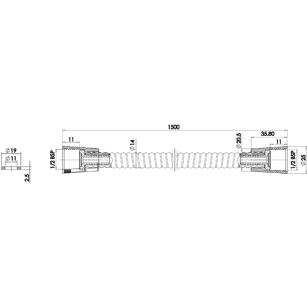 This sturdy yet flexible shower hose is perfect for use with most bath mixers.
