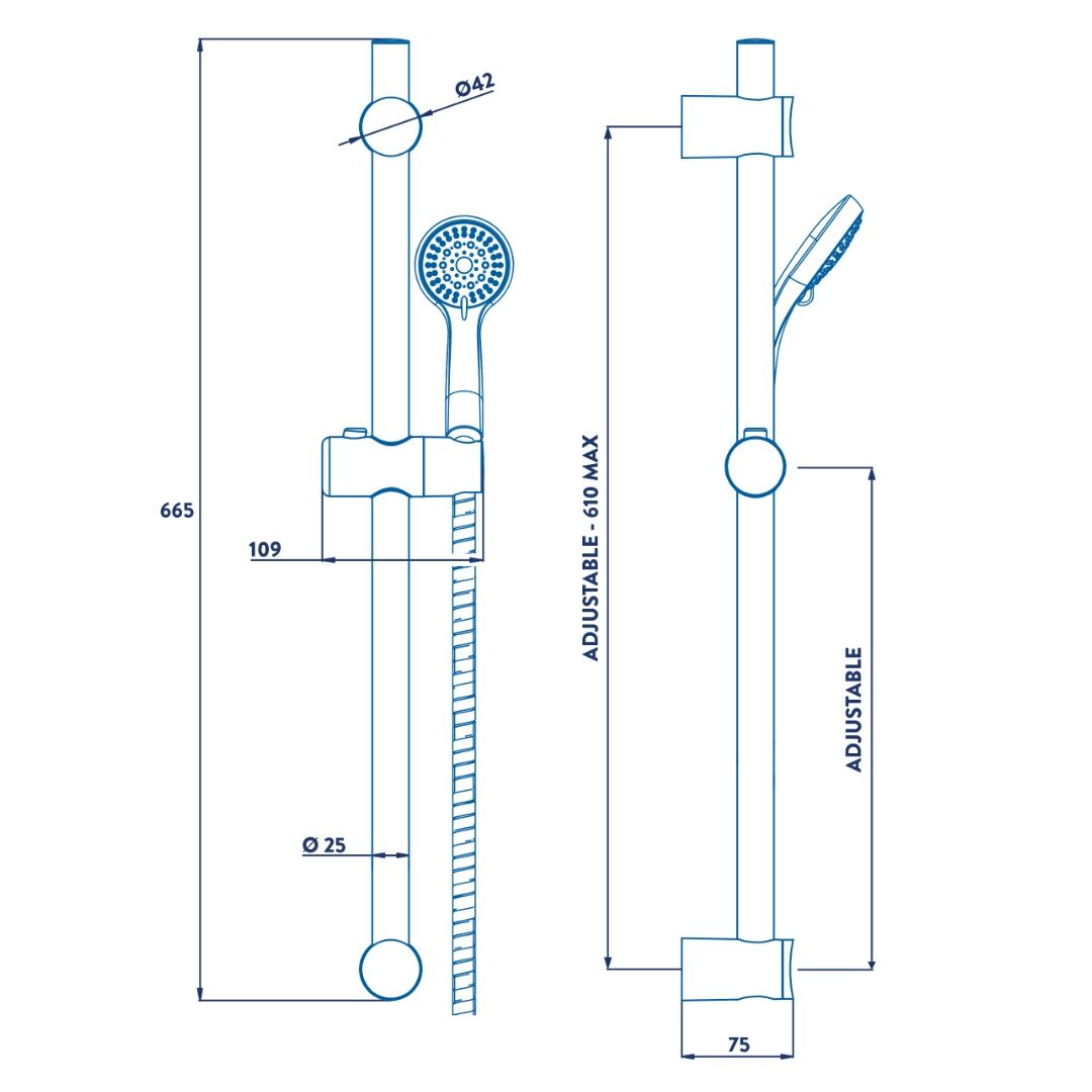 This complete set offers a simple way to incorporate a luxurious shower into any bathroom. Complete with all the essentials, this contemporary collection takes away the guessing game when it comes to pairing up showering accessories.