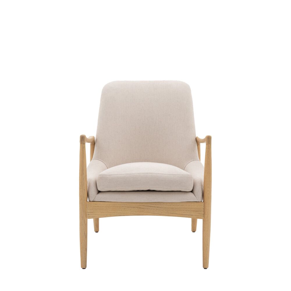 Offering an contemporary twist on mid-Century style, this beautiful chair will suit a wide range of interiors. The oak frame with its natural weathered finish is perfectly complementd by the natural linen coloured fabric. The padded back and seat cushion adds extra comfort to the chair.