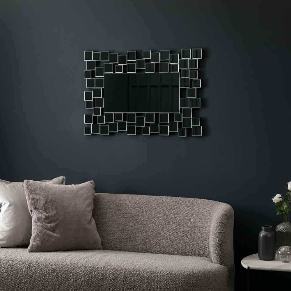 Eye-catching mirror featuring small bevelled mirror pieces beautifully framing the main central mirror.