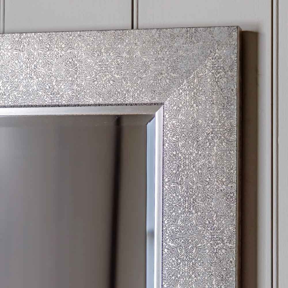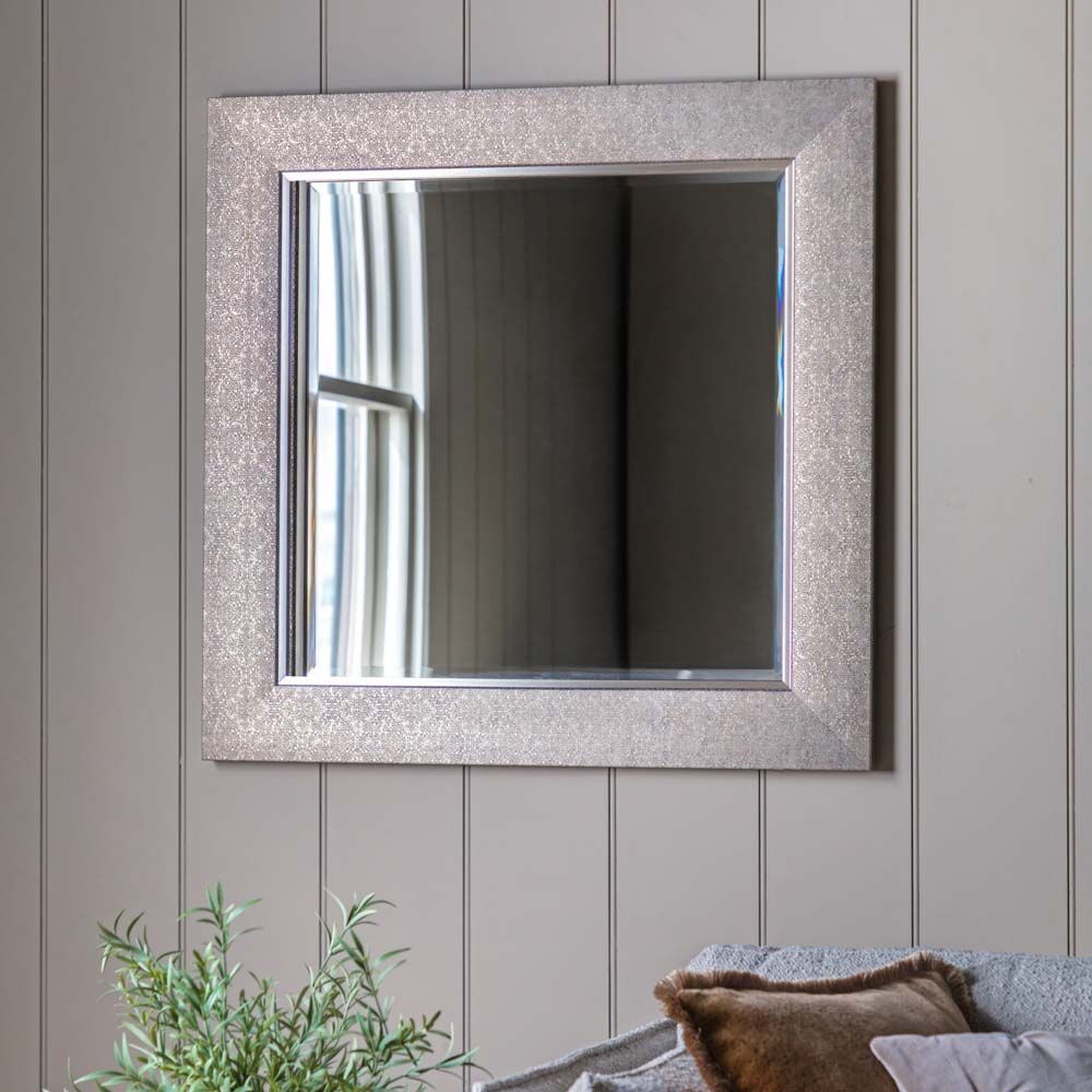 Elegant square mirror with detailed square frame including an intricate pattern, blending the colours in a way that adds elegance and a touch of sophistication to the mirror. The overall look could fit well in various settings, such as a living room, hallway, or bedroom, complementing different decor styles.