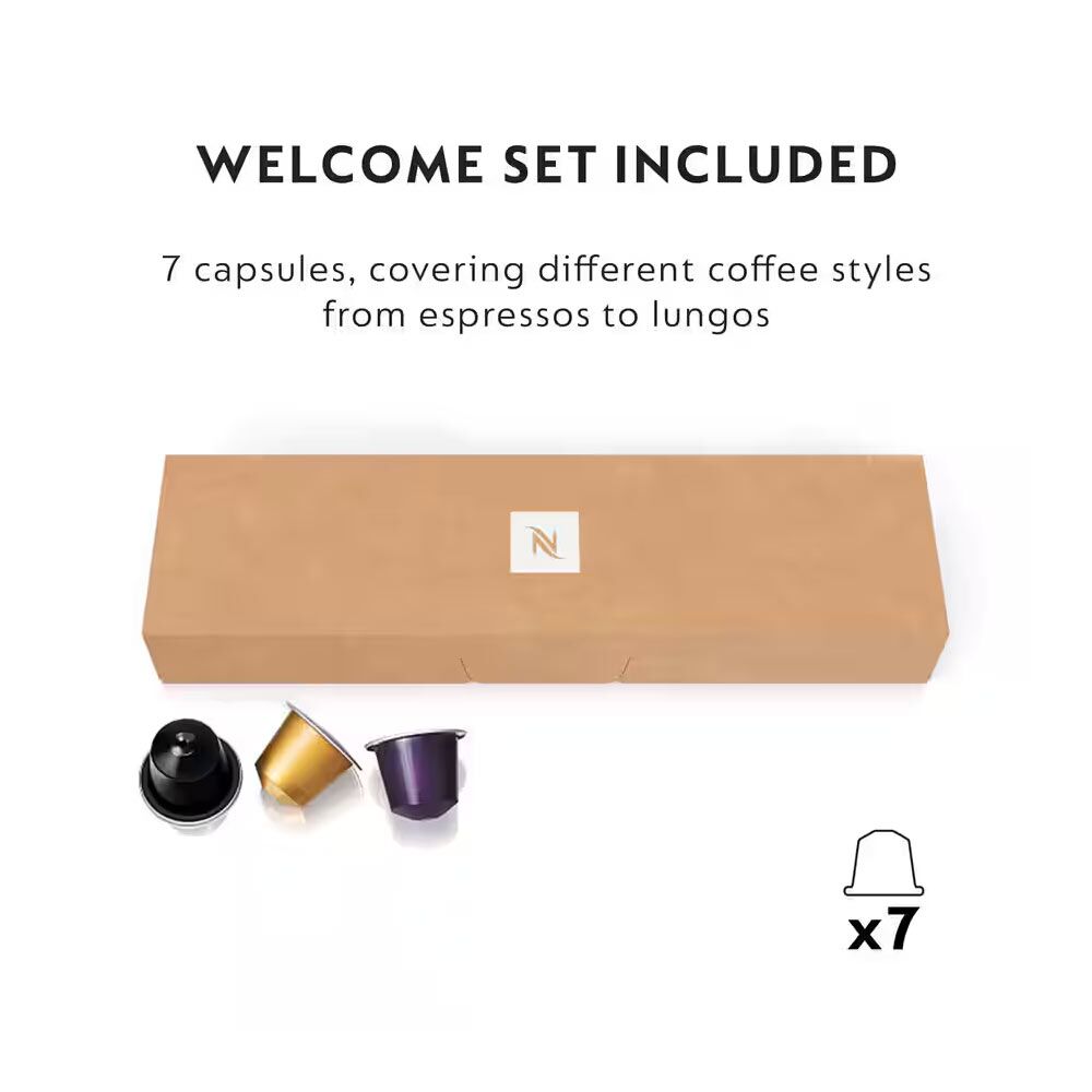 This coffee machine comes with 7 Nespresso coffee pods, covering different coffee styles from Espresso to Lungo to help you discover our recipes and flavours you can find out more about our coffees on the Nespresso website.