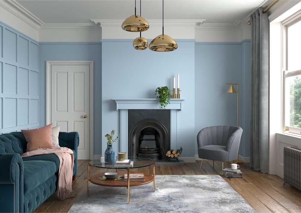 Blue Ribbon is a pale, misty blue that brings to mind clear winter mornings and calm seas. This is a colour equally at home in a country cottage with natural wood or in an edgy new building surrounded by white. Crisp or comfortable, moody or light hearted, this shade can do it all.