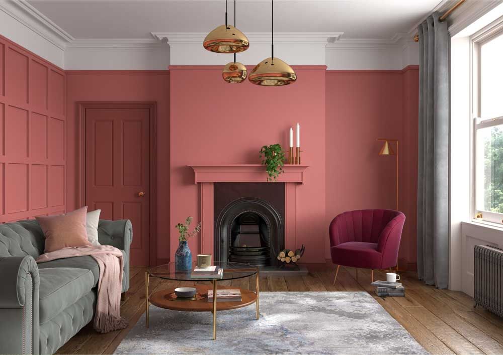 Coral Pink is an eye catching mid tone that provides a very mature and vivacious way to use pink in the home. Though this clean and bold hue feels very modern and impactful, coral pink was first used as a colour name as far back as 1892.