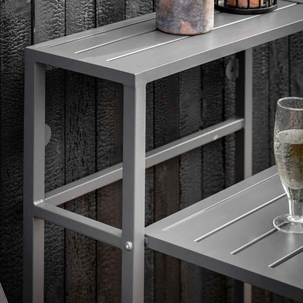 Perfect for balconies this practical and stylish set will let you make the most of your outdoor space no matter how small. With 2 foldable dining chairs and a multilayered foldable dining table providing extra shelf storage and space saving properties all in one this set is a great addition to your balcony. Made from dark grey powder coated steel with a Textilene seat and back on the chairs for extra comfort.