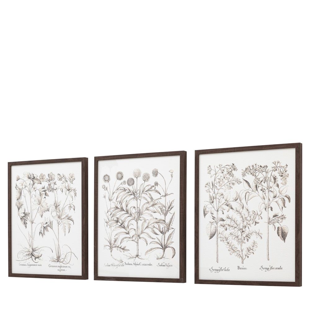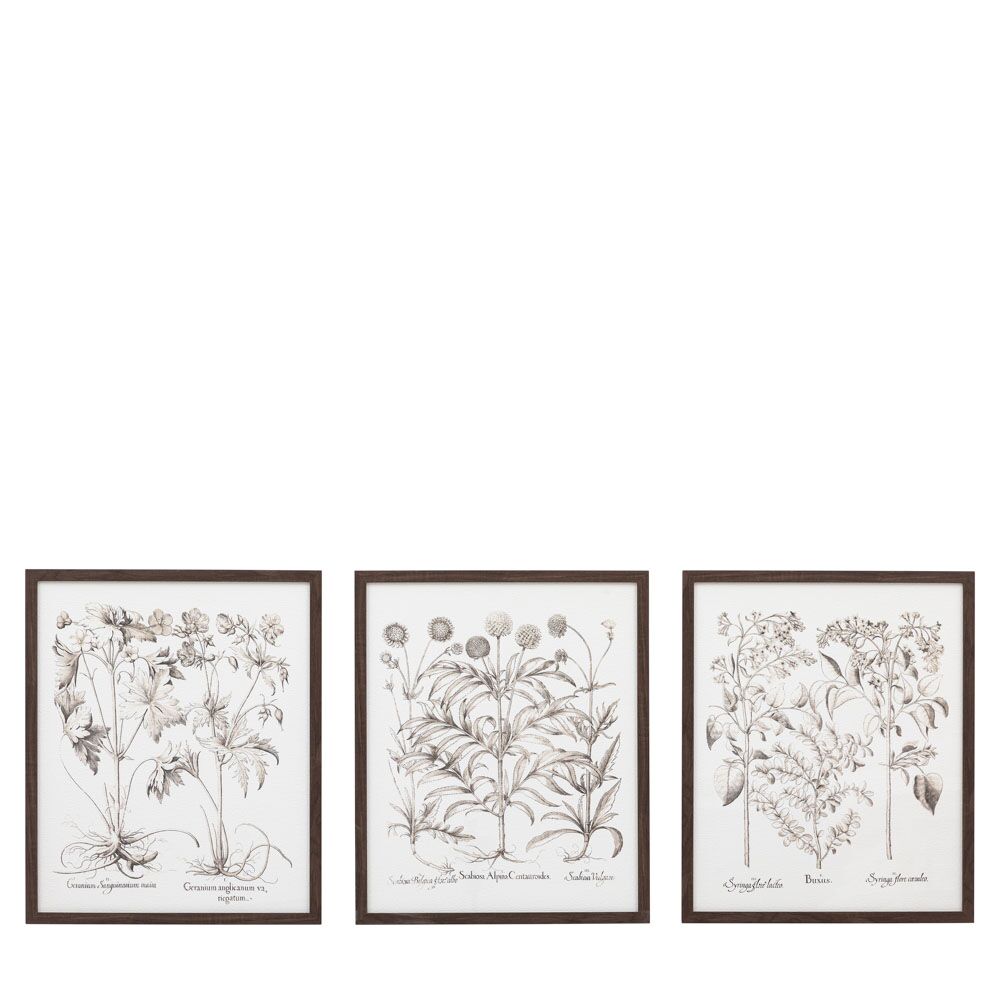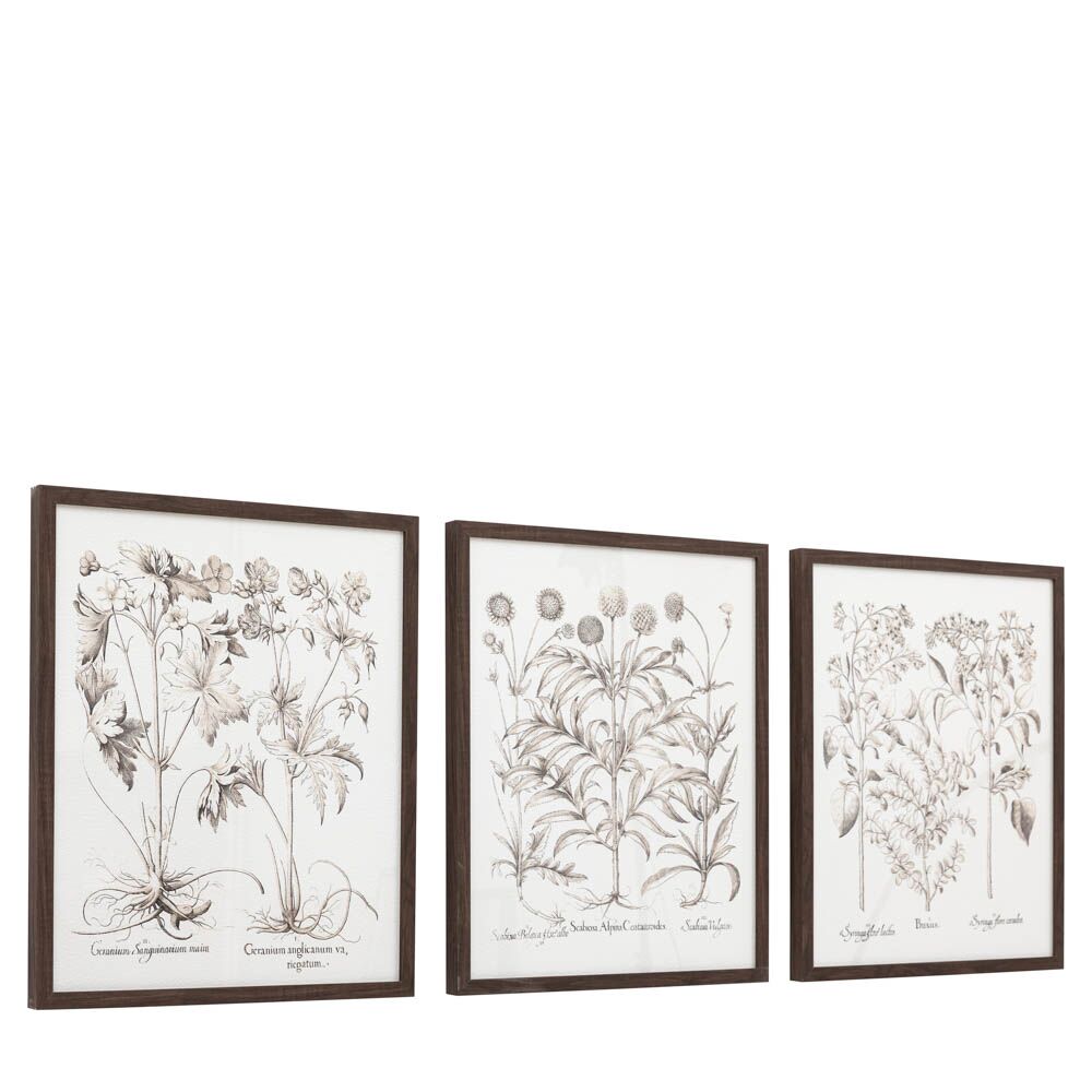 This set of three framed art is a testament to the intricate beauty of the natural world. These detailed botanical illustrations bring the outdoors in, adding a touch of timeless elegance and botanical charm to any space.