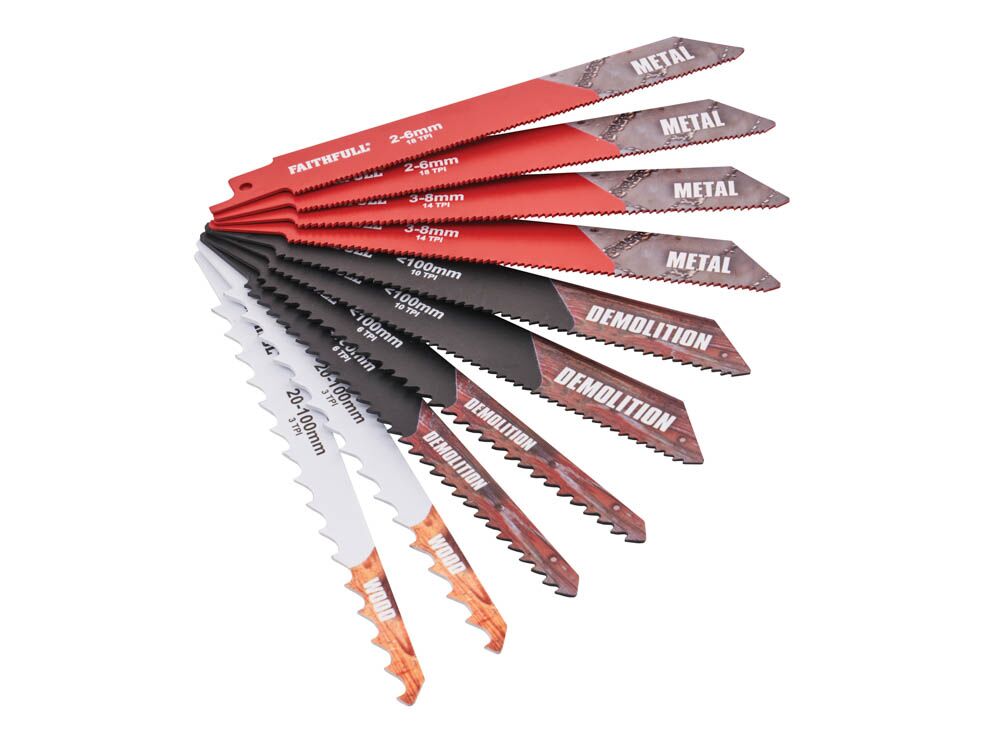 The Faithfull Sabre Saw Blade Set contains an assortment of high-quality blades manufactured for precision and stability when cutting. Their design and tooth geometry vary with regard to speed and the cutting application in which they are used for.