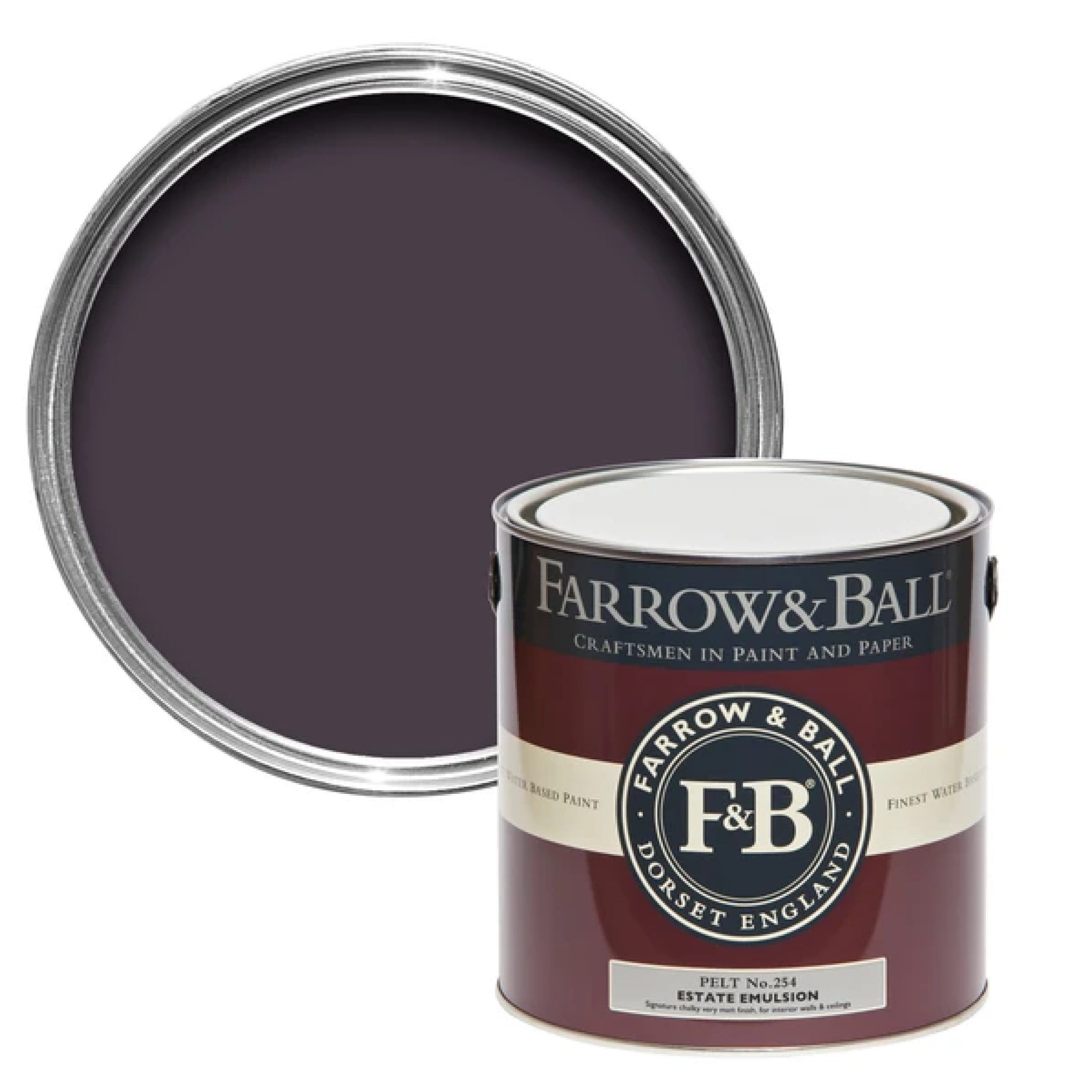 Much bluer in feel than the similarly strong Brinjal, Pelt can appear almost black in darker spaces and is particularly sensational in Full Gloss. Pair with Brassica to create a dark and moody scheme or soften with the feminine shades of Middleton Pink and Great White.
