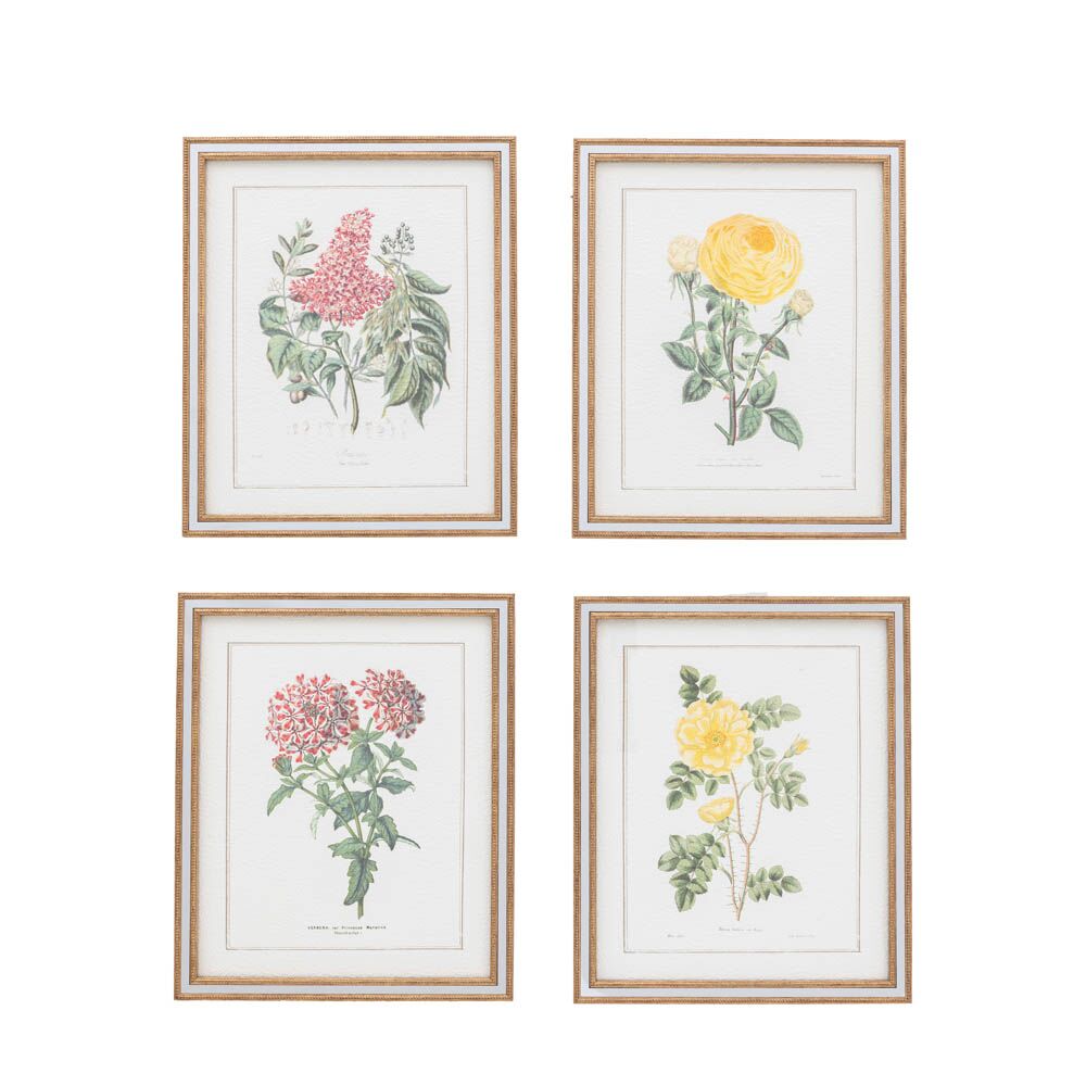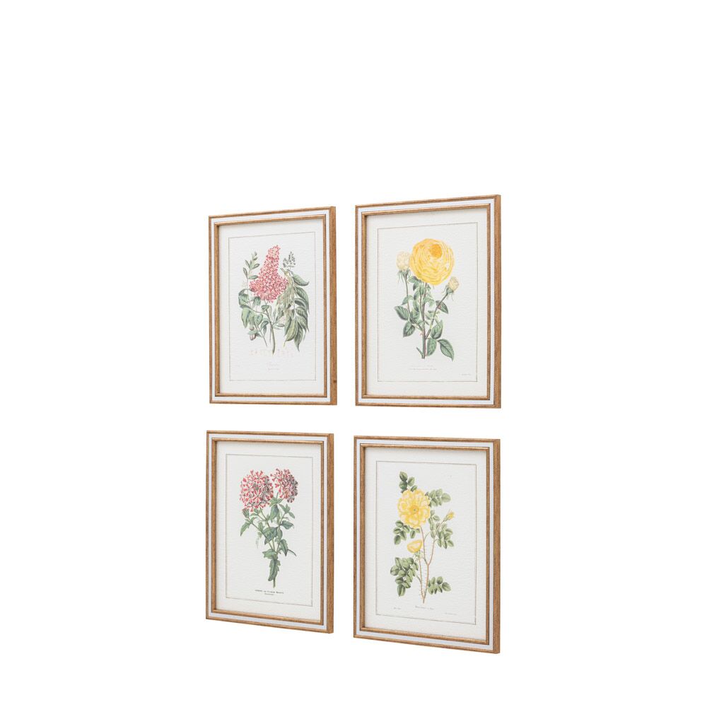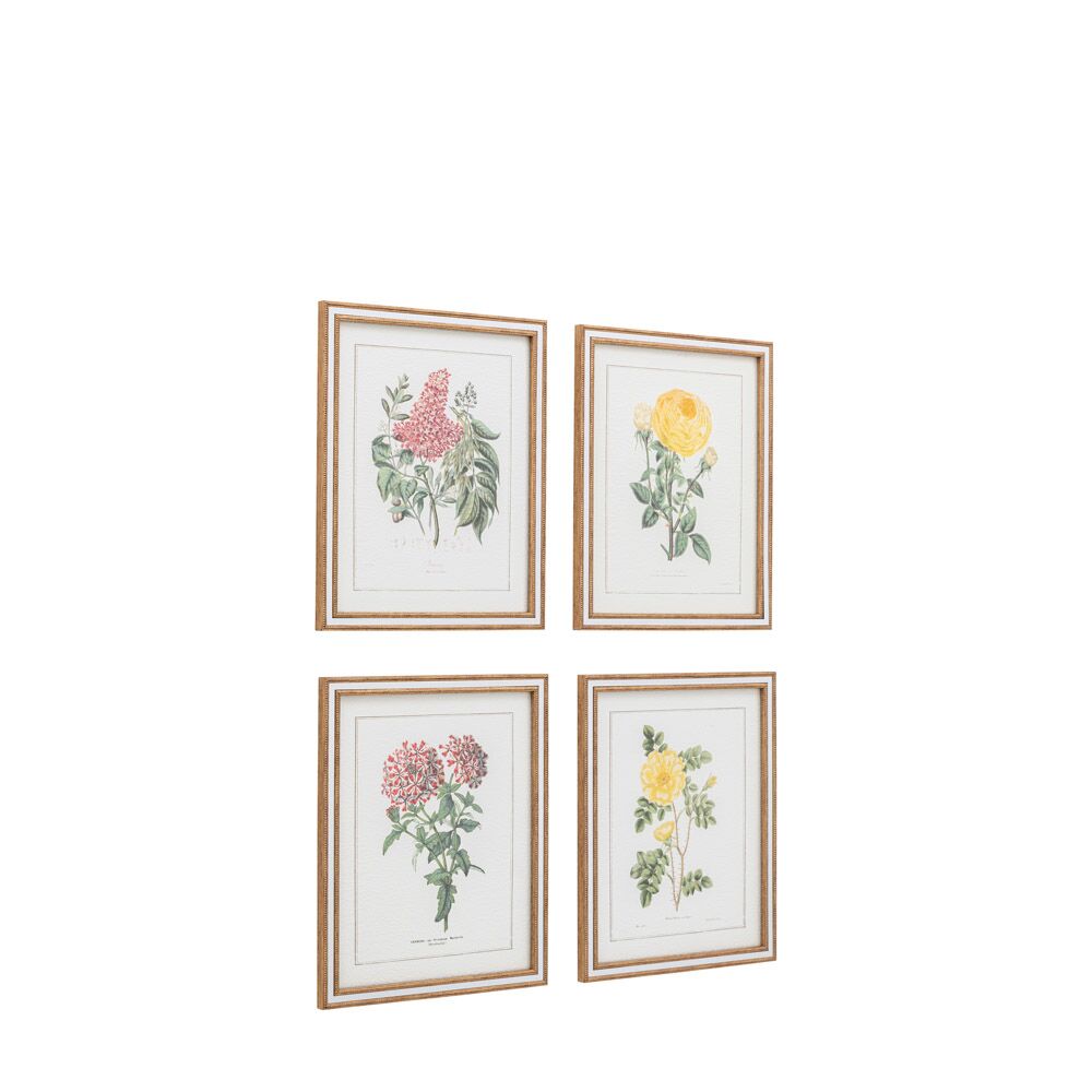 Bring the freshness of a blooming garden into your home with this set of four framed art. These detailed botanical illustrations capture the delicate beauty of different flowers, adding a touch of natural charm and vibrancy to any room.