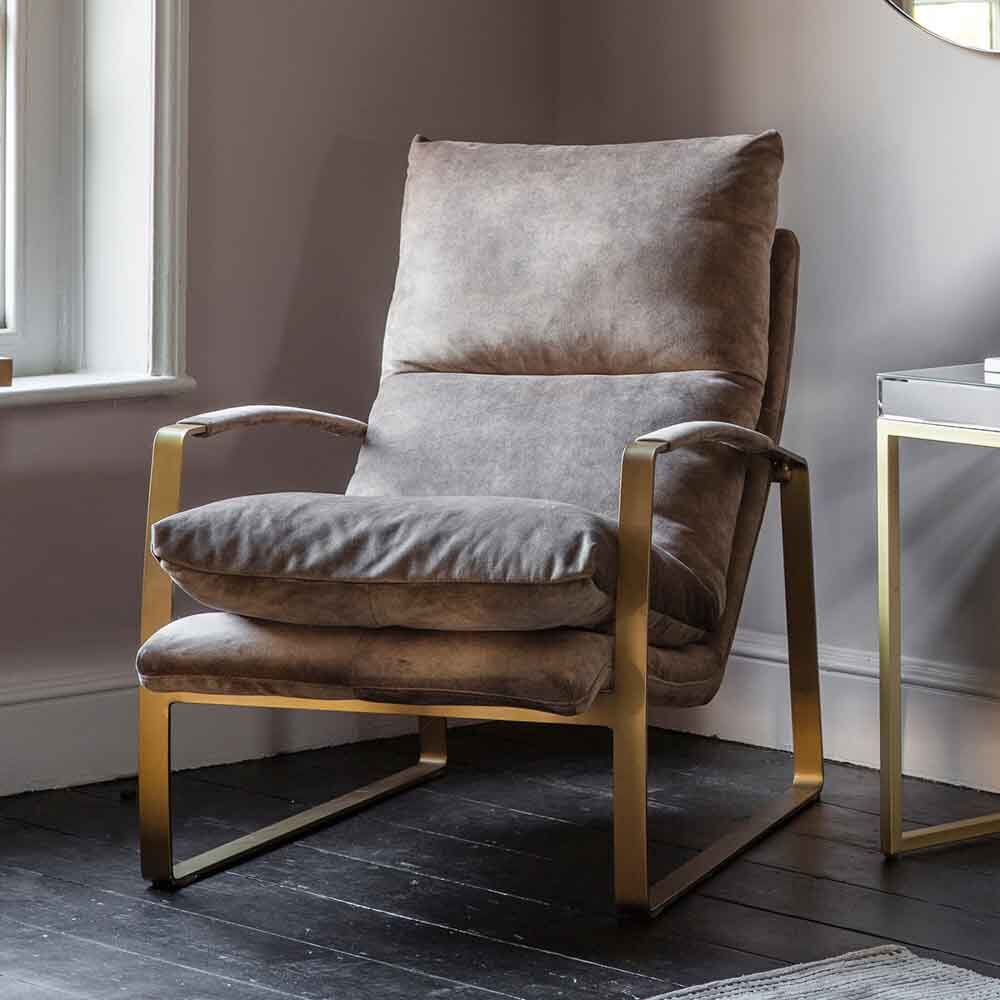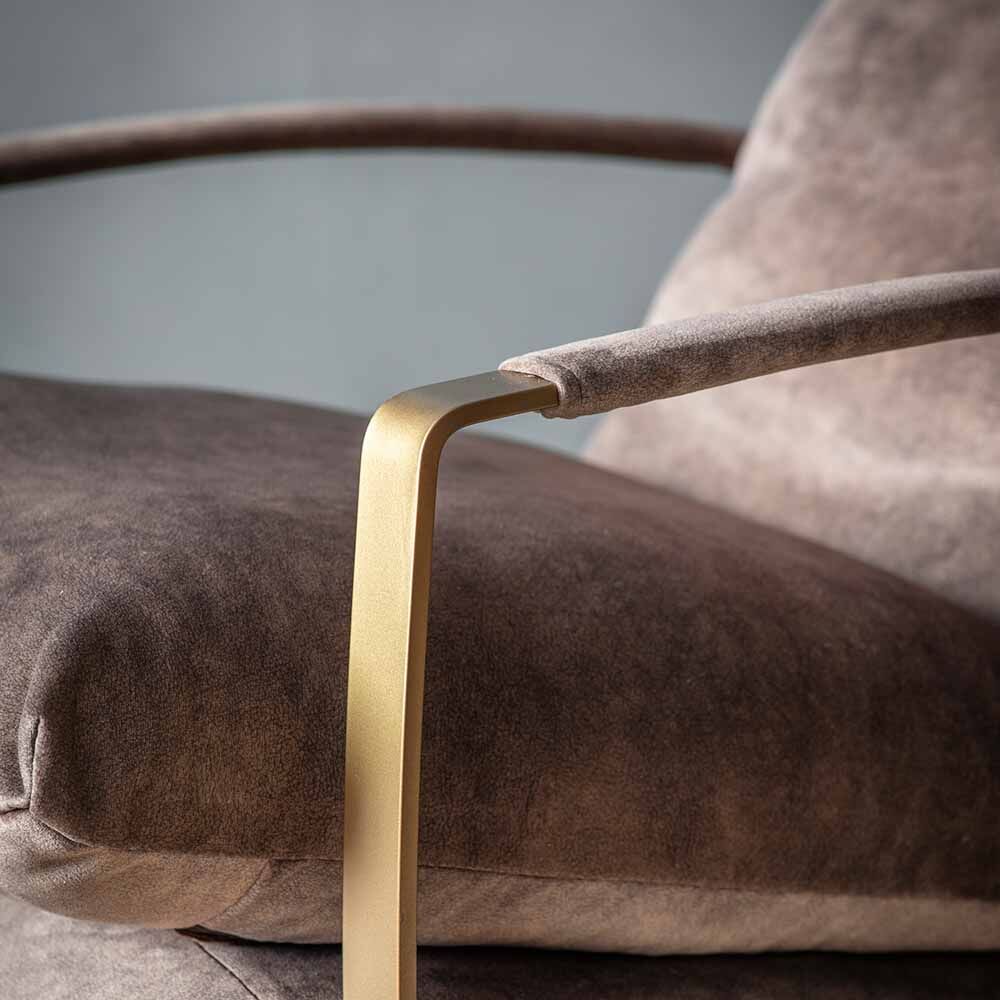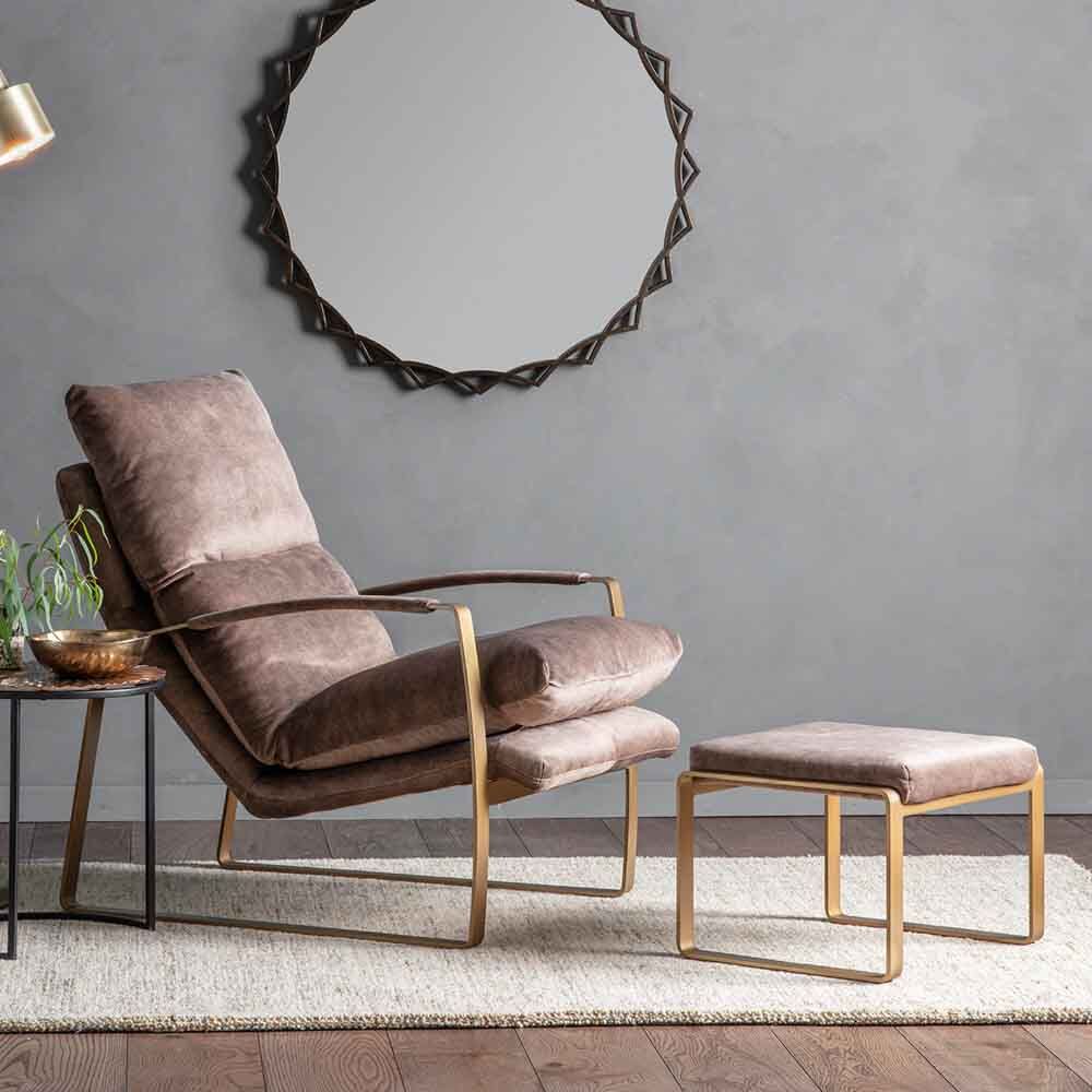 With a minimalist gold toned metal frame and extra soft upholstered seat you can sit back in style and relax in this modern lounger chair. Designed to pair with the matching footstool sold separately.