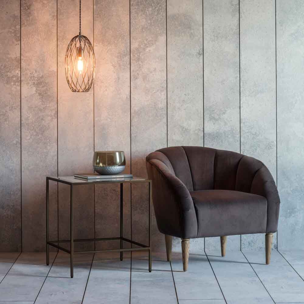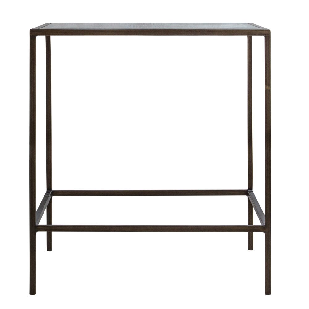 With a sleek design this collection is sure to suit any sophisticate interior. This collection features an antique metal frame in a bronze finish with inlaid, bevelled glass tops.