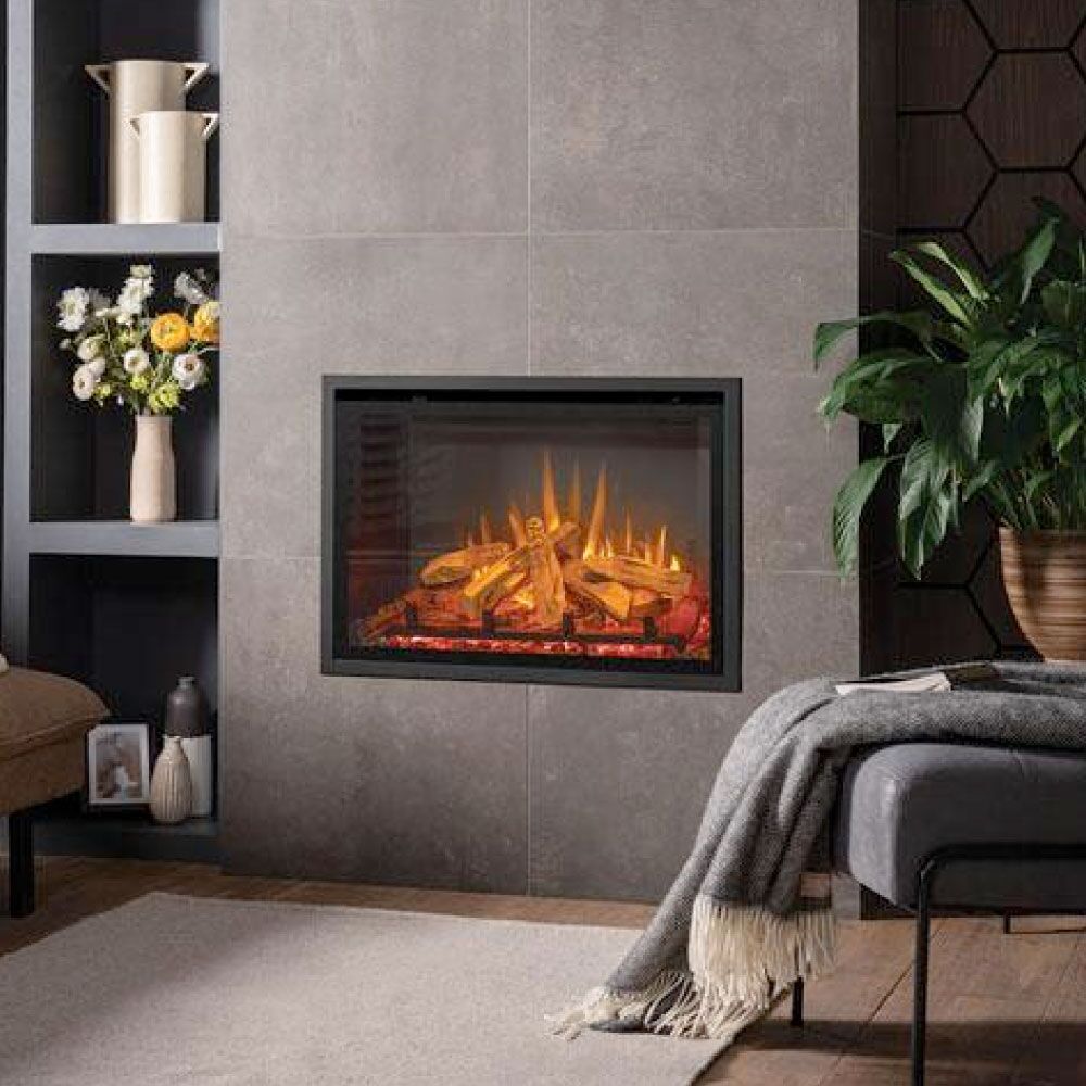 Experience a new level of elegance with the Gazco eMotiv 74 electric fire, designed to effortlessly enhance medium-sized fireplace openings.